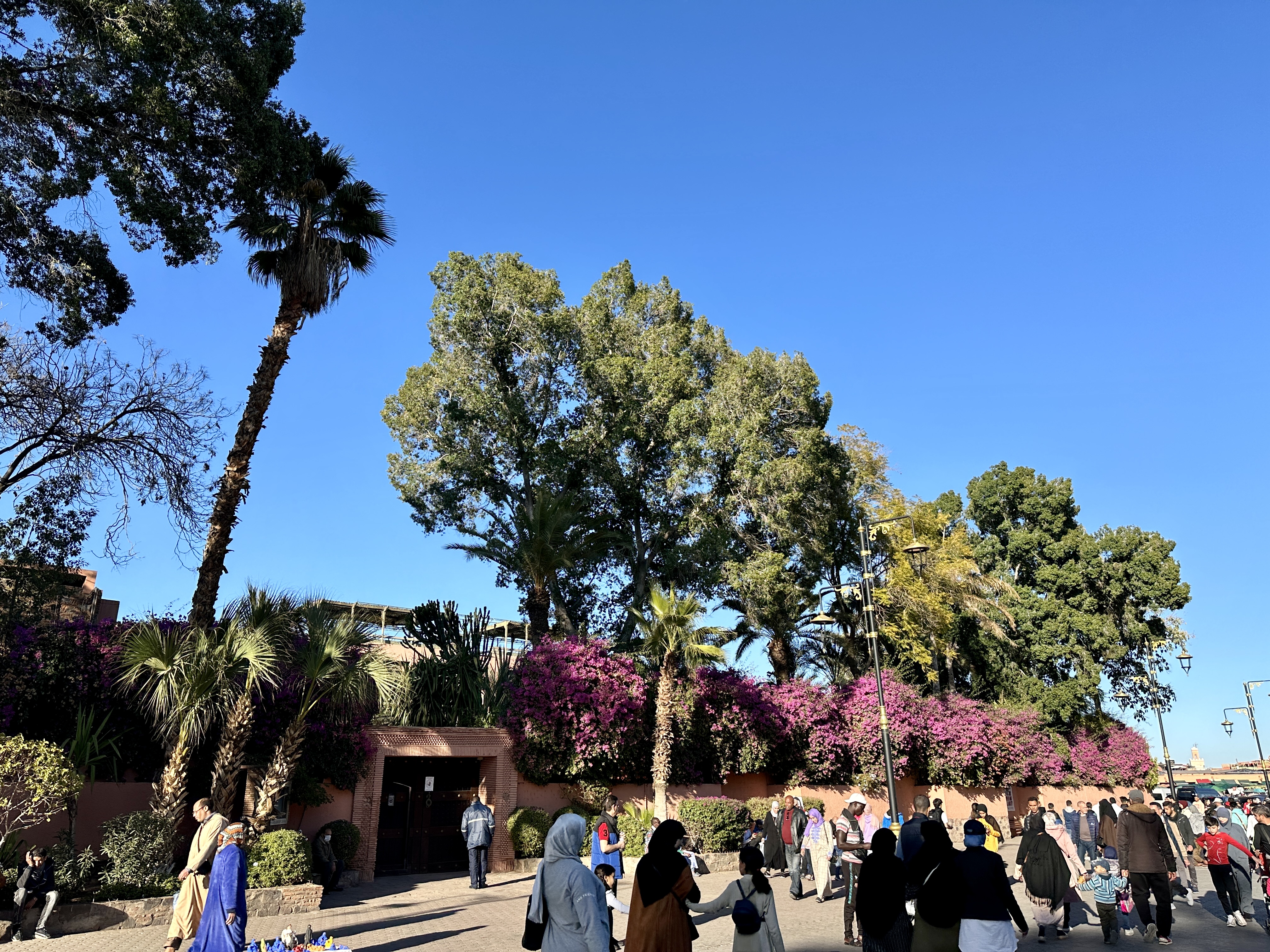 광장입구 우측으로는 마라케시의 명물 마차 대기줄이 세워져 있었고 좌측으로는 아름다운 꽃과 함께