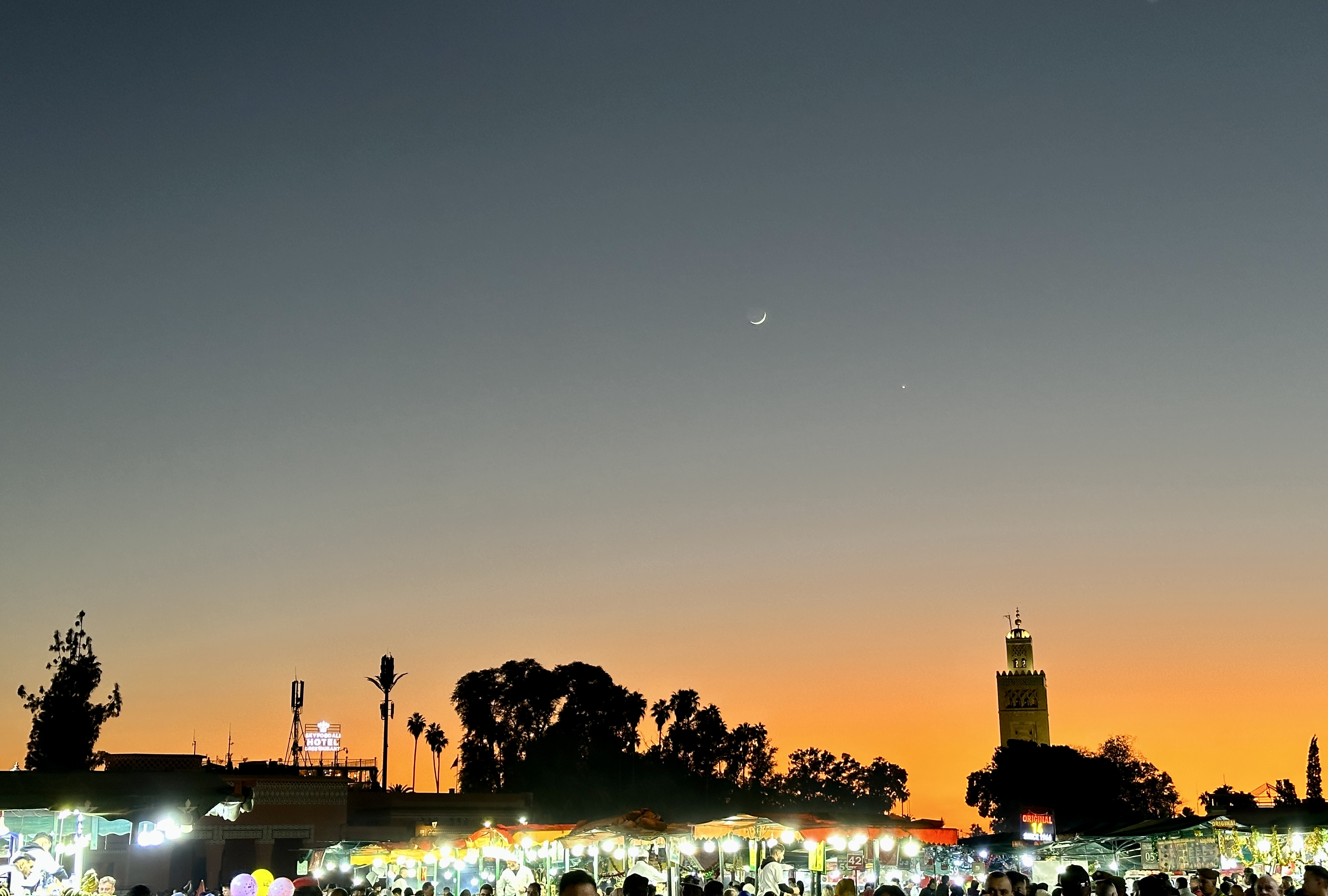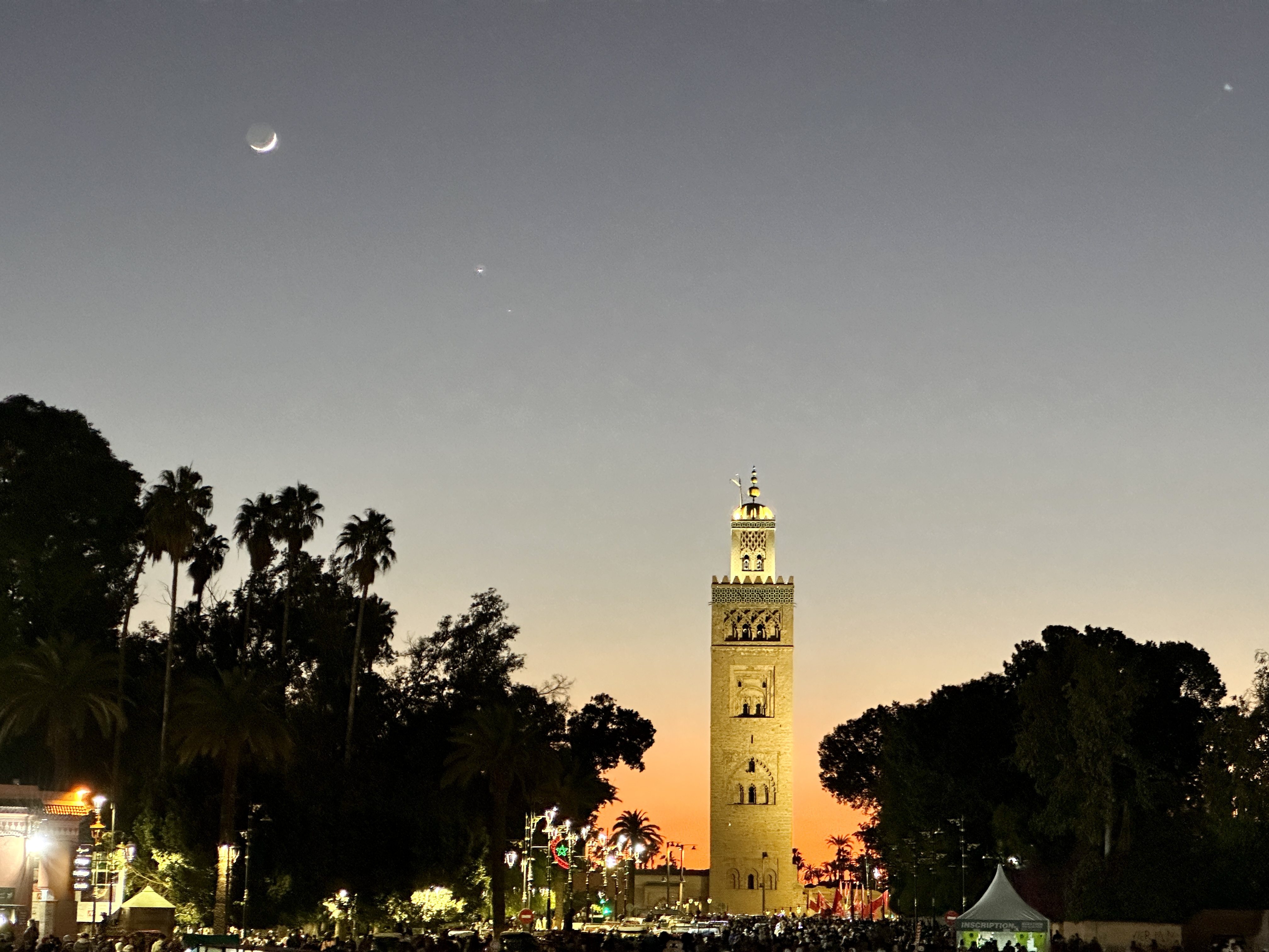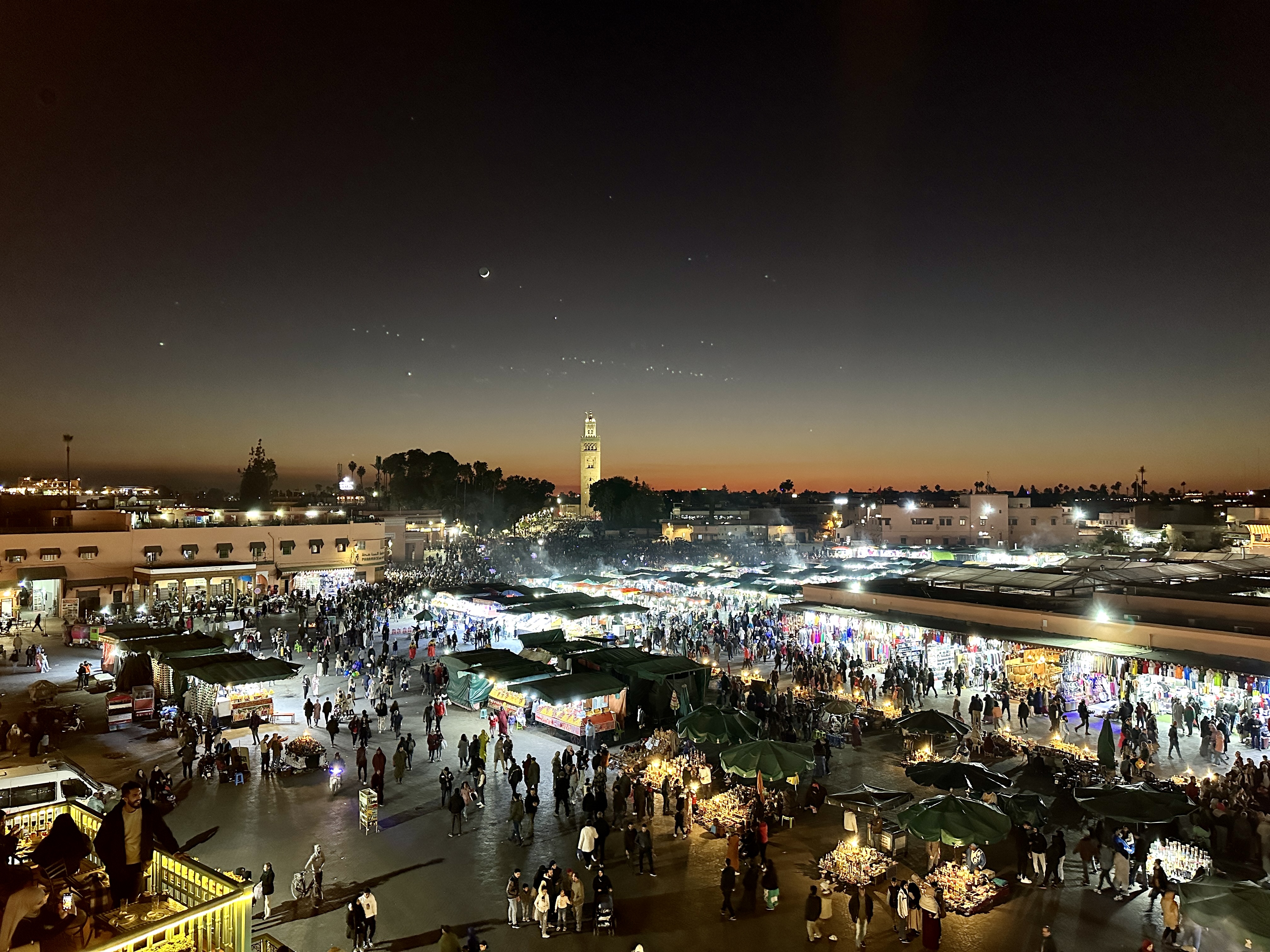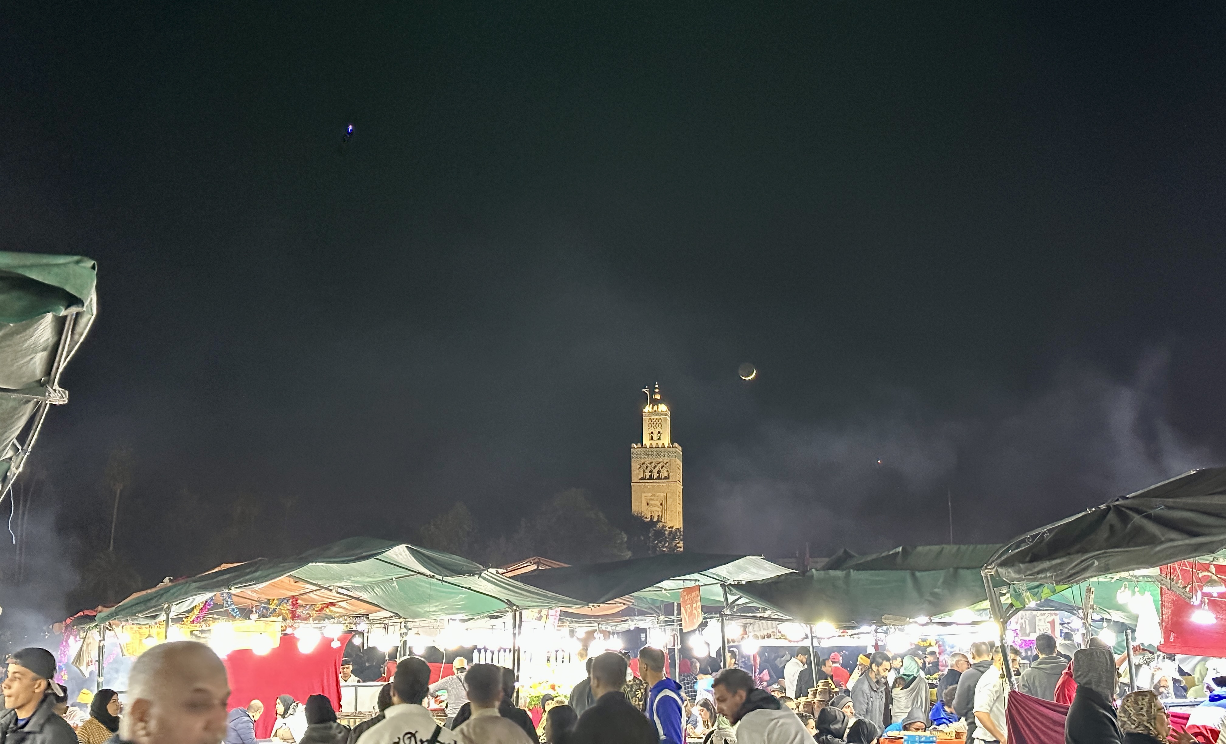 주변에 밝은 빛이 없어서 더욱 아름답고 달과 별도 잘 보이는 모로코 마라케시의 야경은