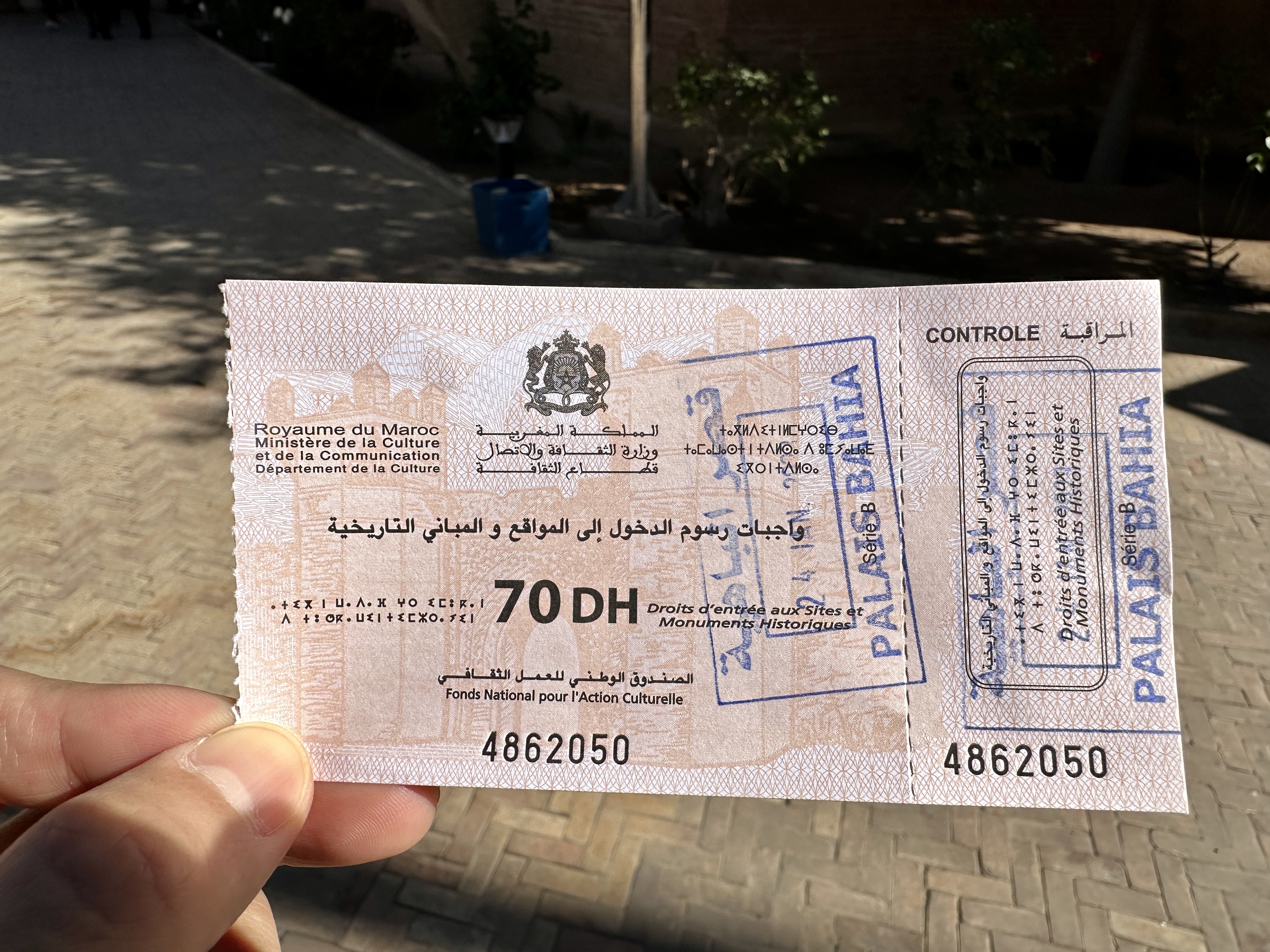 바히아 궁전 입장료는 성인은 70디르함이고 아이는 30 디르함립니다.