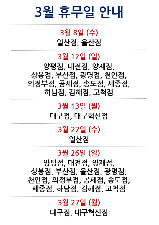 2023년 3월 홈플러스 휴무일 안내 | 홈플러스 3월 휴무일 정보 | 3월 홈플러스 휴무 정보 | 홈플러스