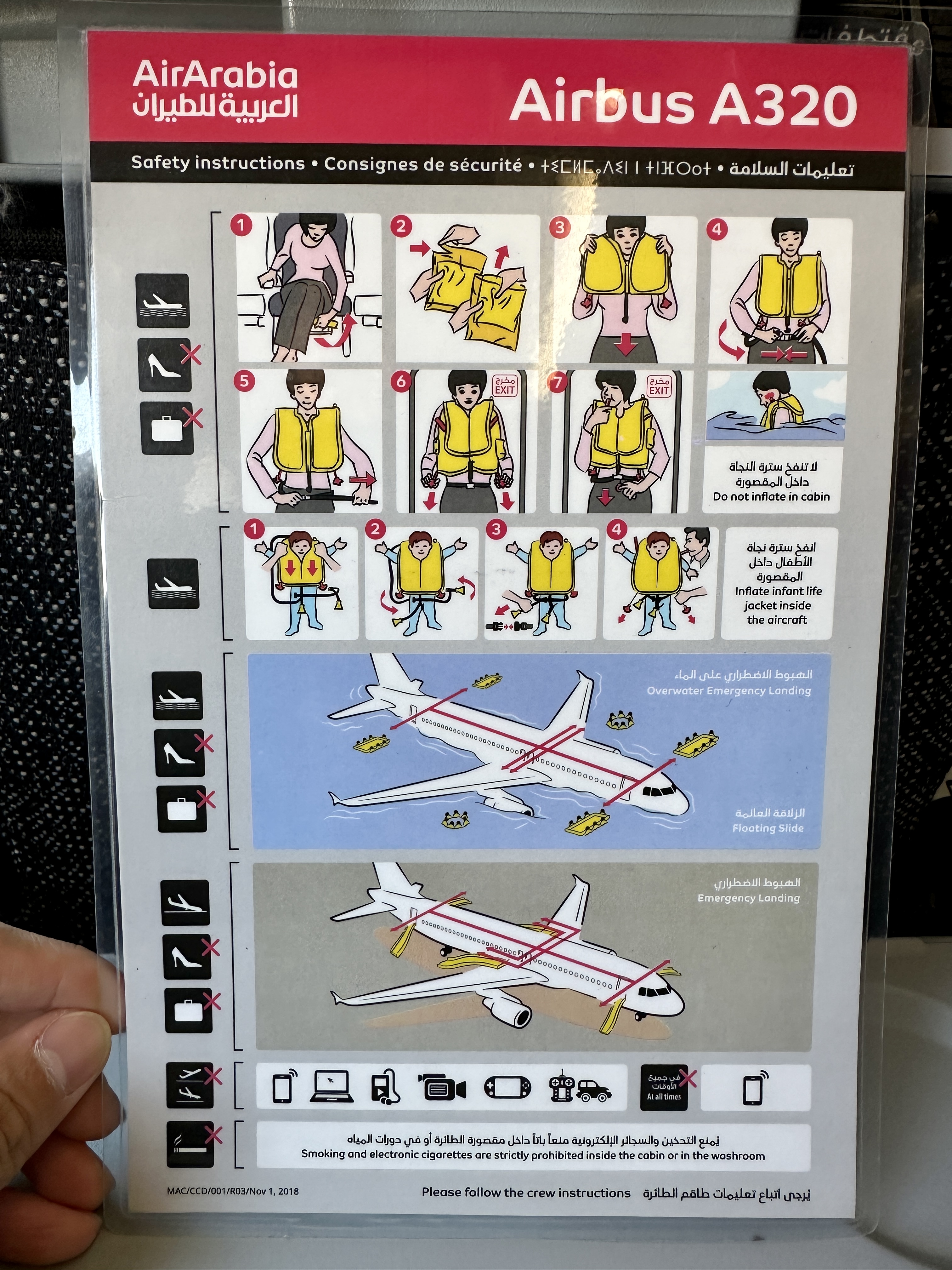 마라케시에서 페즈까지 가는 에어아라비아 항공기는 A320으로 좌석 간격도 적당히 넓었고,