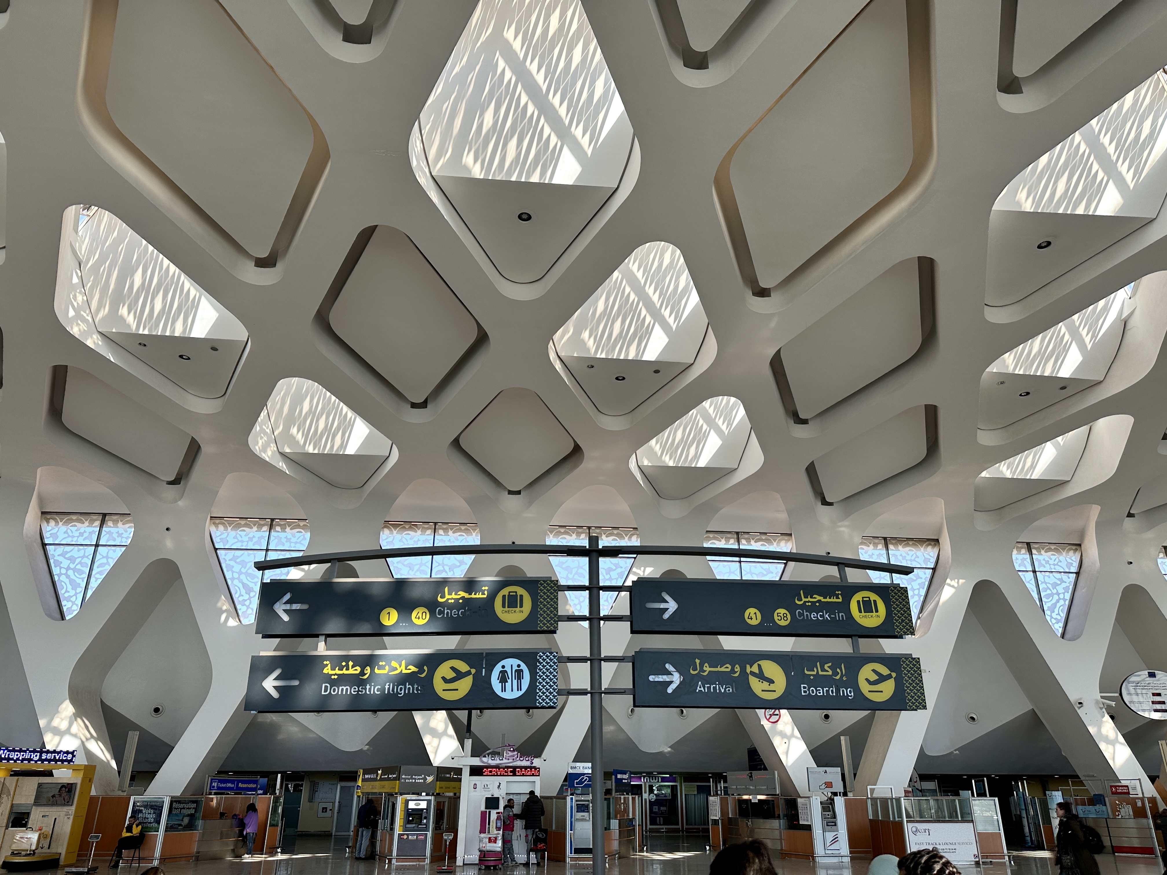 마라케시 공항의 외관은 독특한 디자인의 구조물로 설계되었습니다.