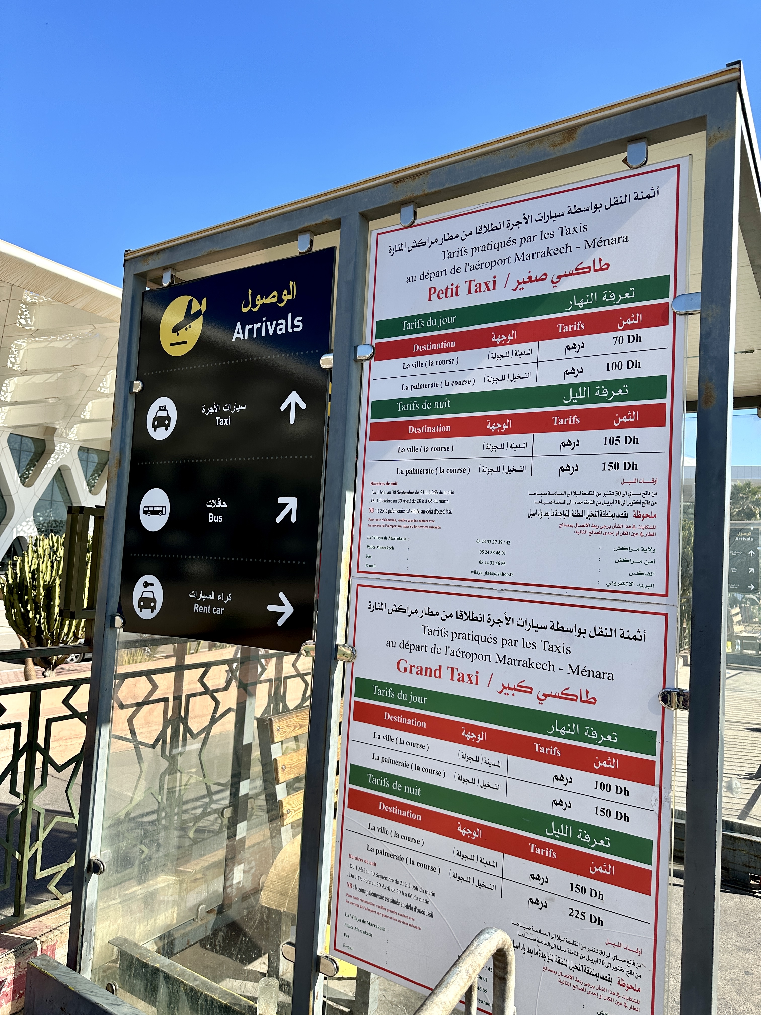 마라케시 공항 도착 앞에는 쁘띠 택시와 그랑택시 요금표가 붙어 있었고,