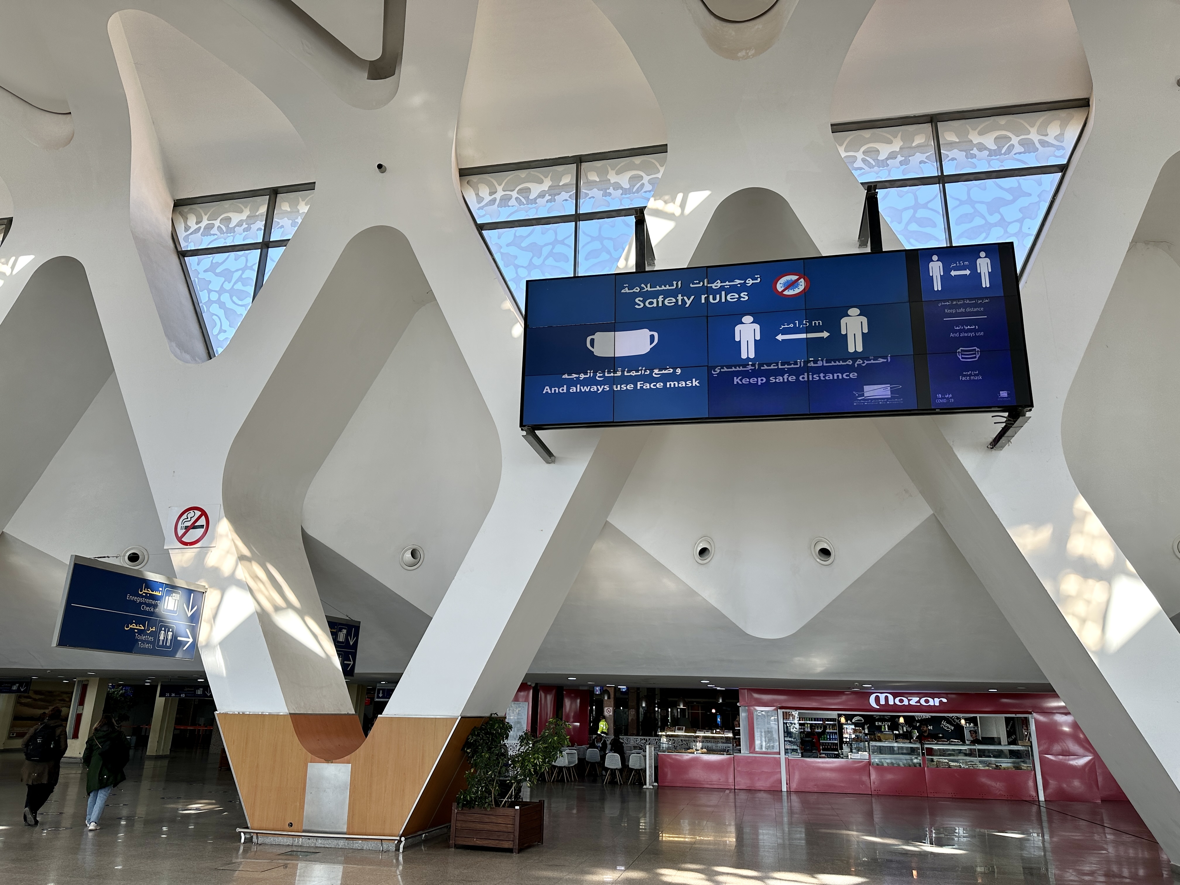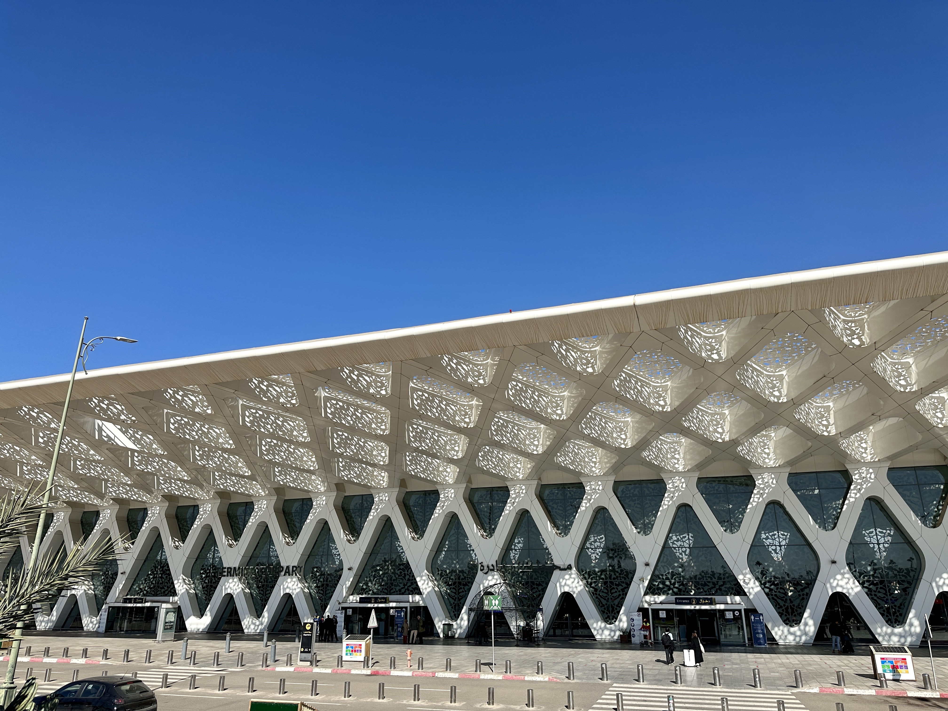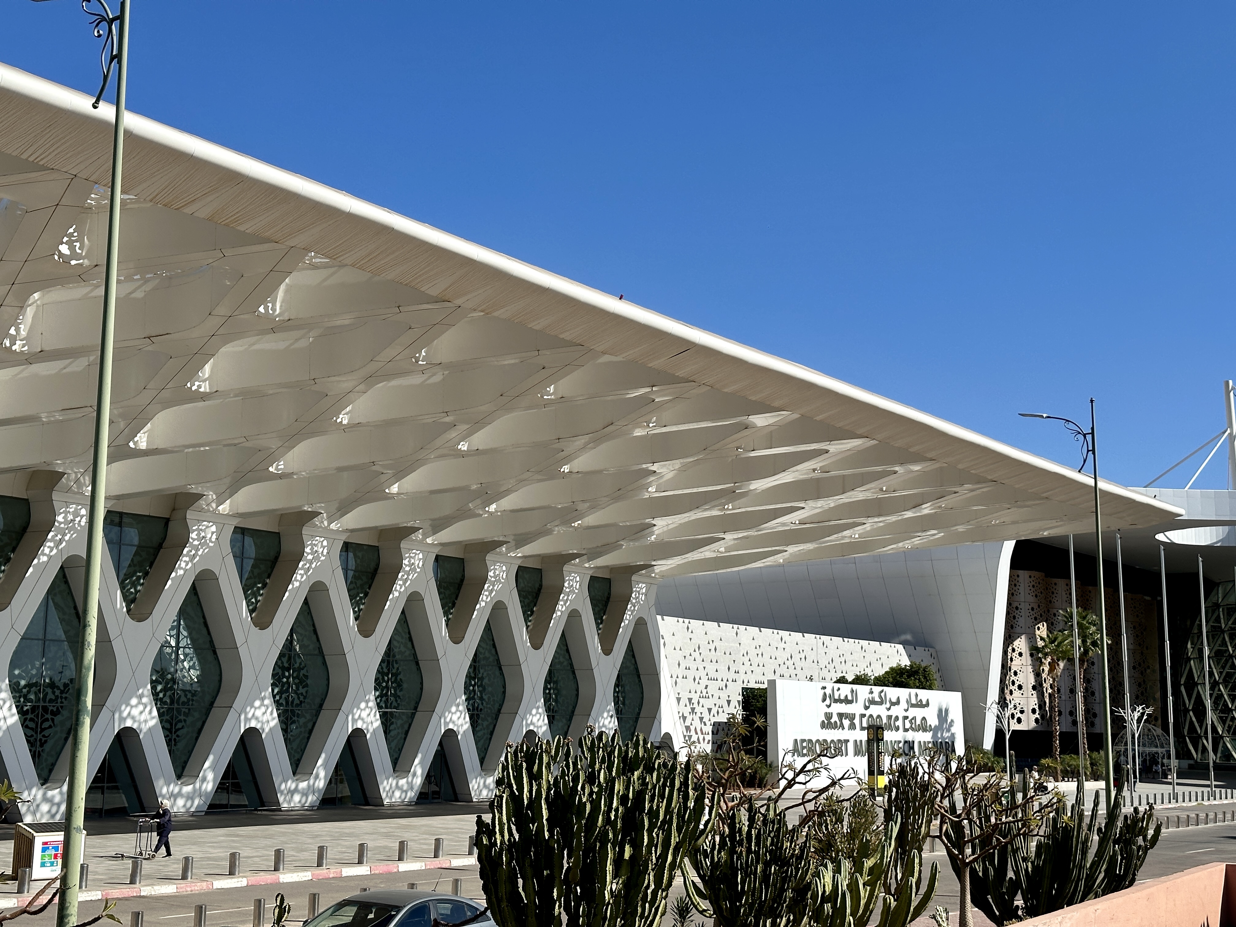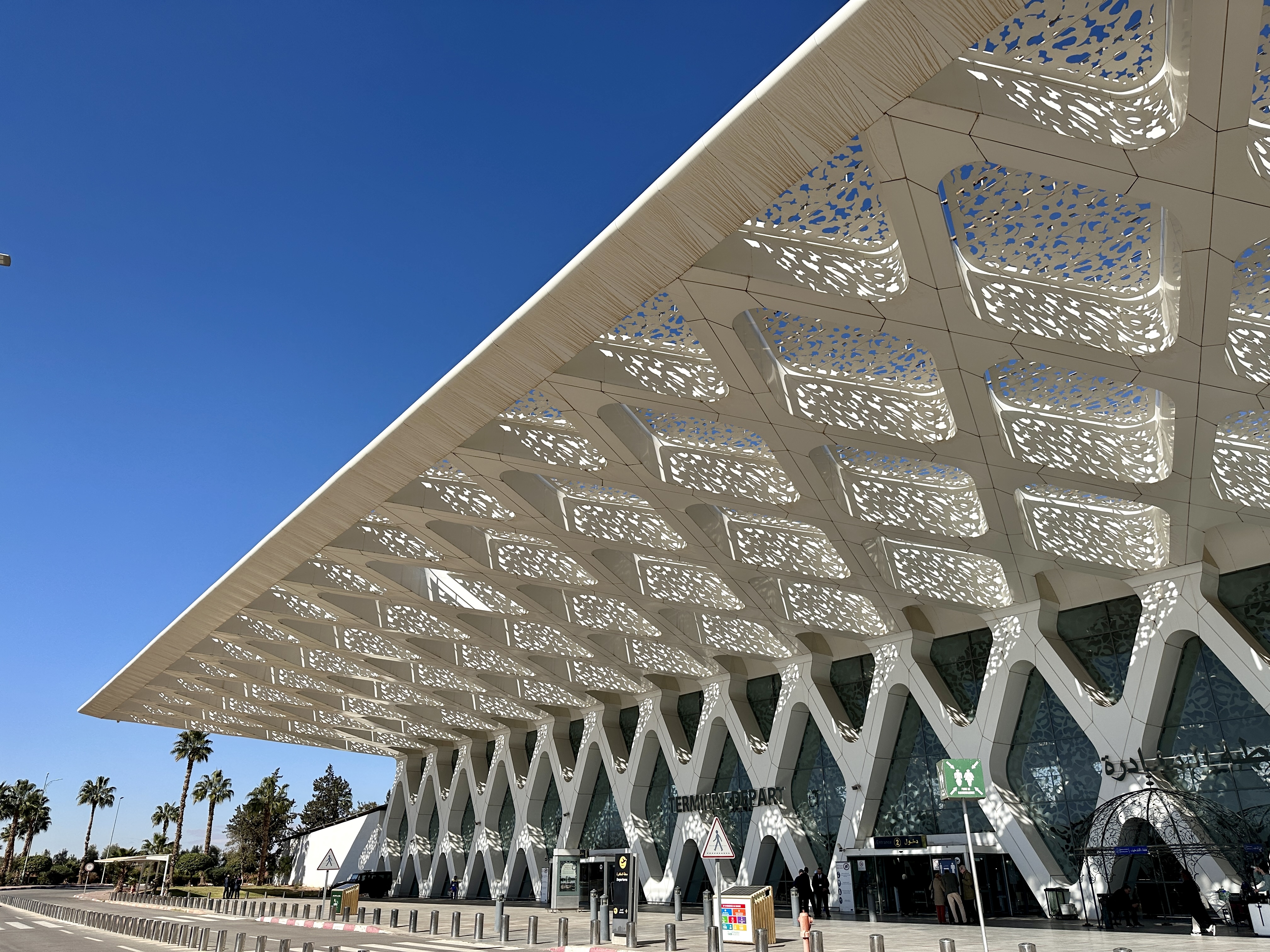 마라케시 공항의 외관은 독특한 디자인의 구조물로 설계되었습니다.