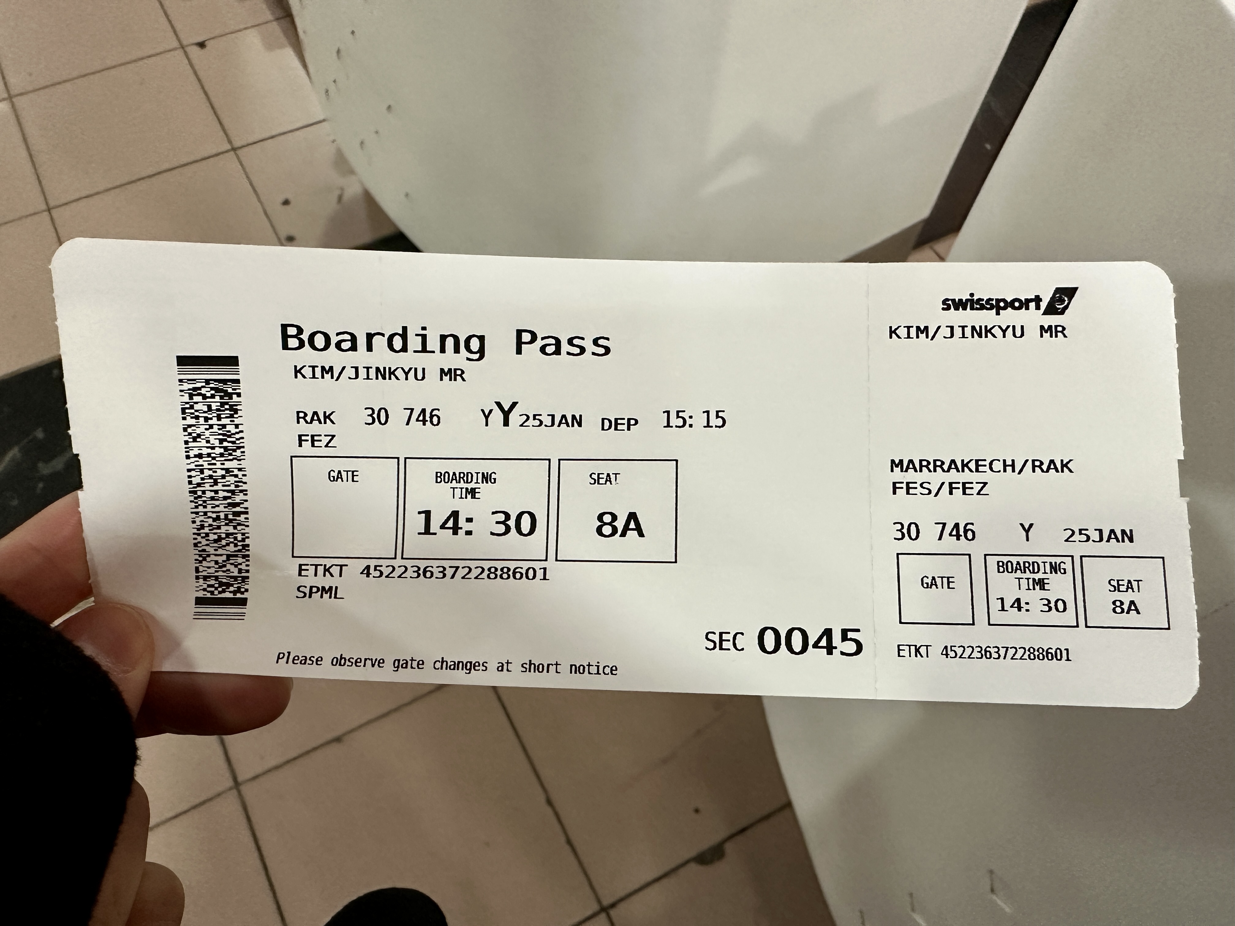 항공 편명은 3O746 편 이었고, 마라케시에서 페즈까지는 비행기로 이동하게 되었습니다.