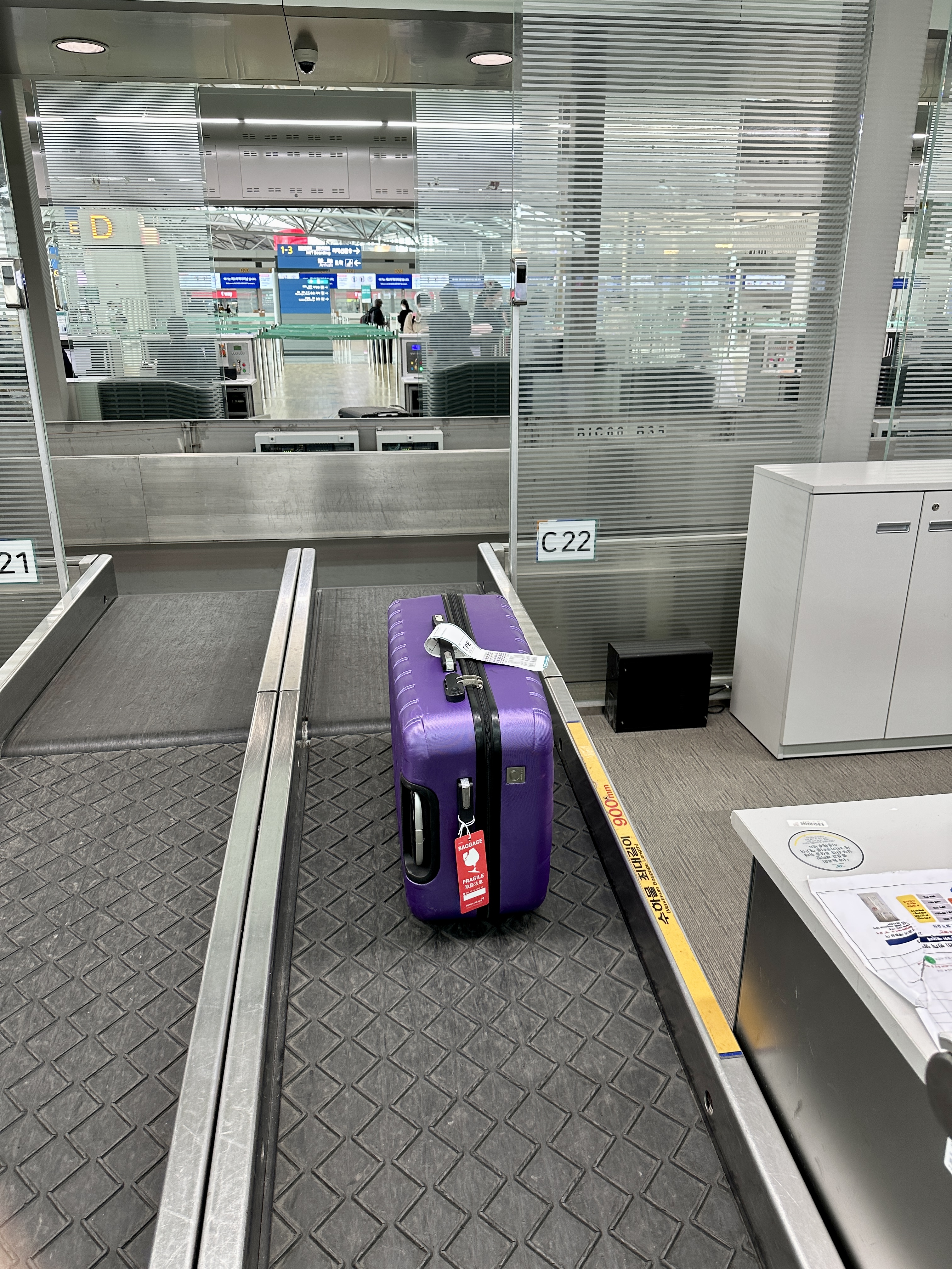 화면에서 시키는대로 잘 따라하며 수하물 태그를 수하물에 부착해주면 벨트가 자동으로 움직이며