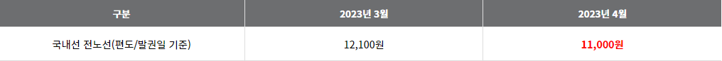 - 발권 적용일 : 2023년 4월 1일 ~ 2023년 4월 30일(발권일 기준)