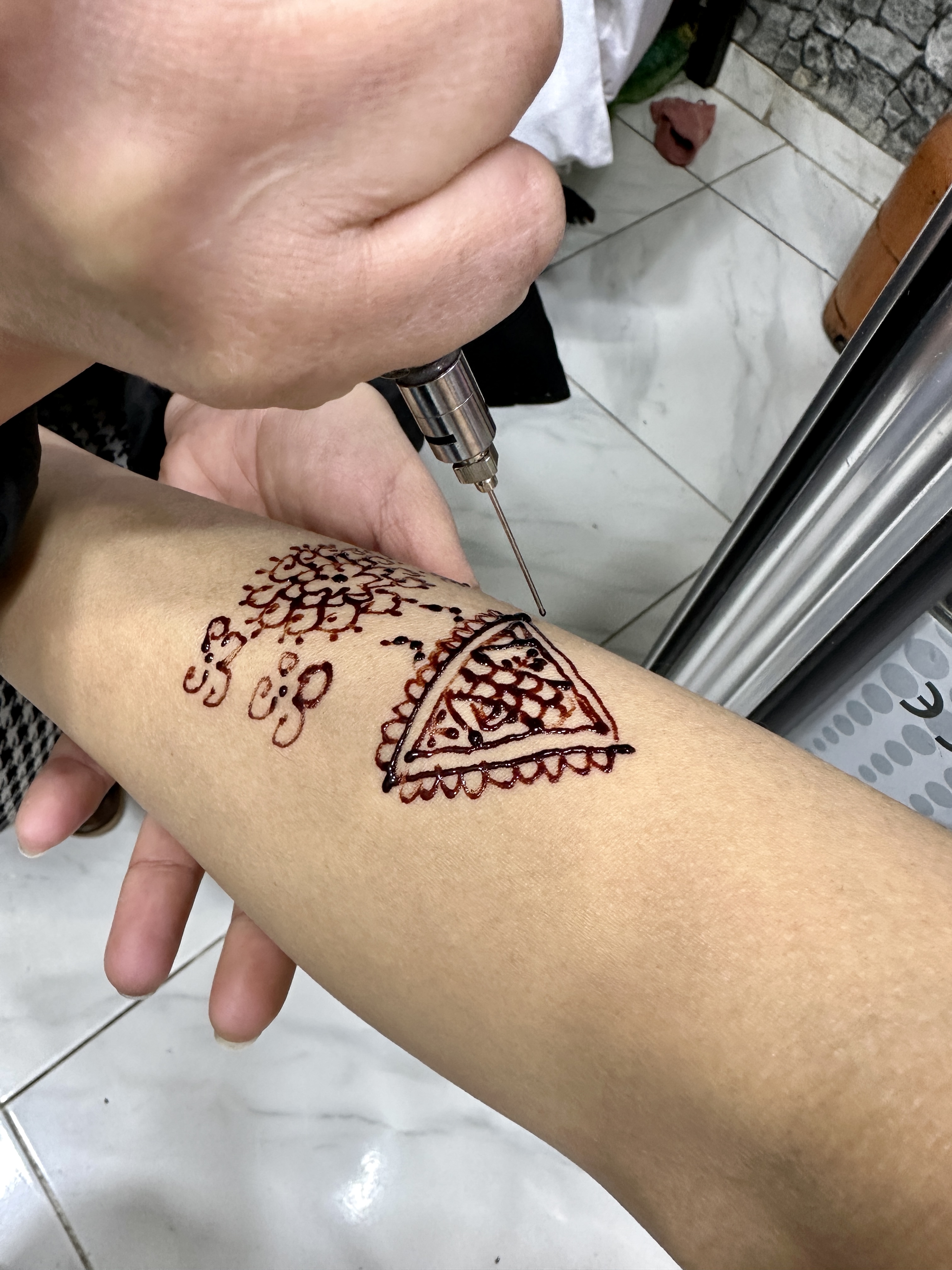 호기심 때문에 추가 비용을 내고 약 50 디르함에 흥정하여 헤나문신을 하였습니다.
