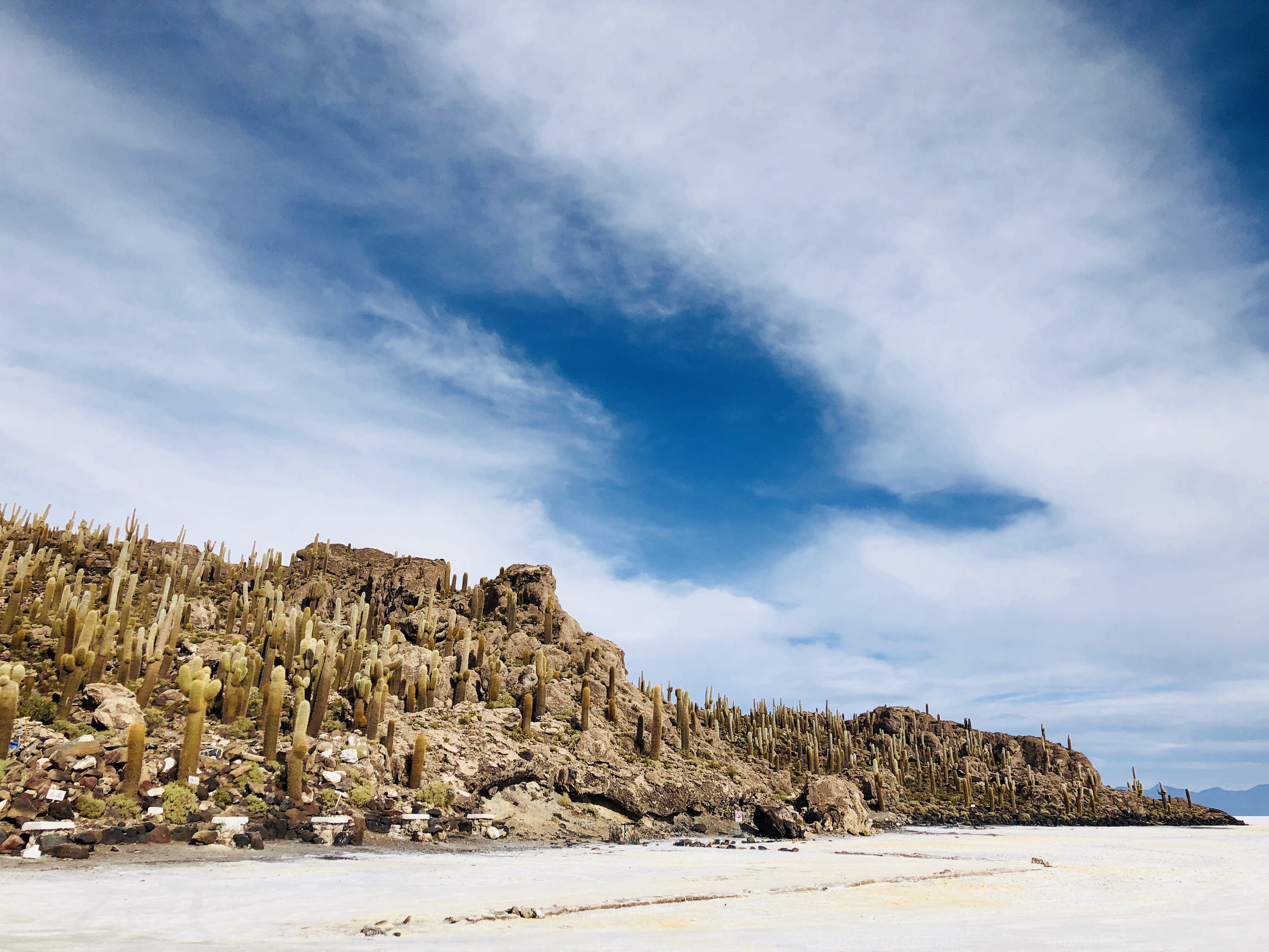첫 목적지는 하얀 사막 한가운데와는 어울리지 않는 선인장으로 이루어진 잉카와시 섬 이다.