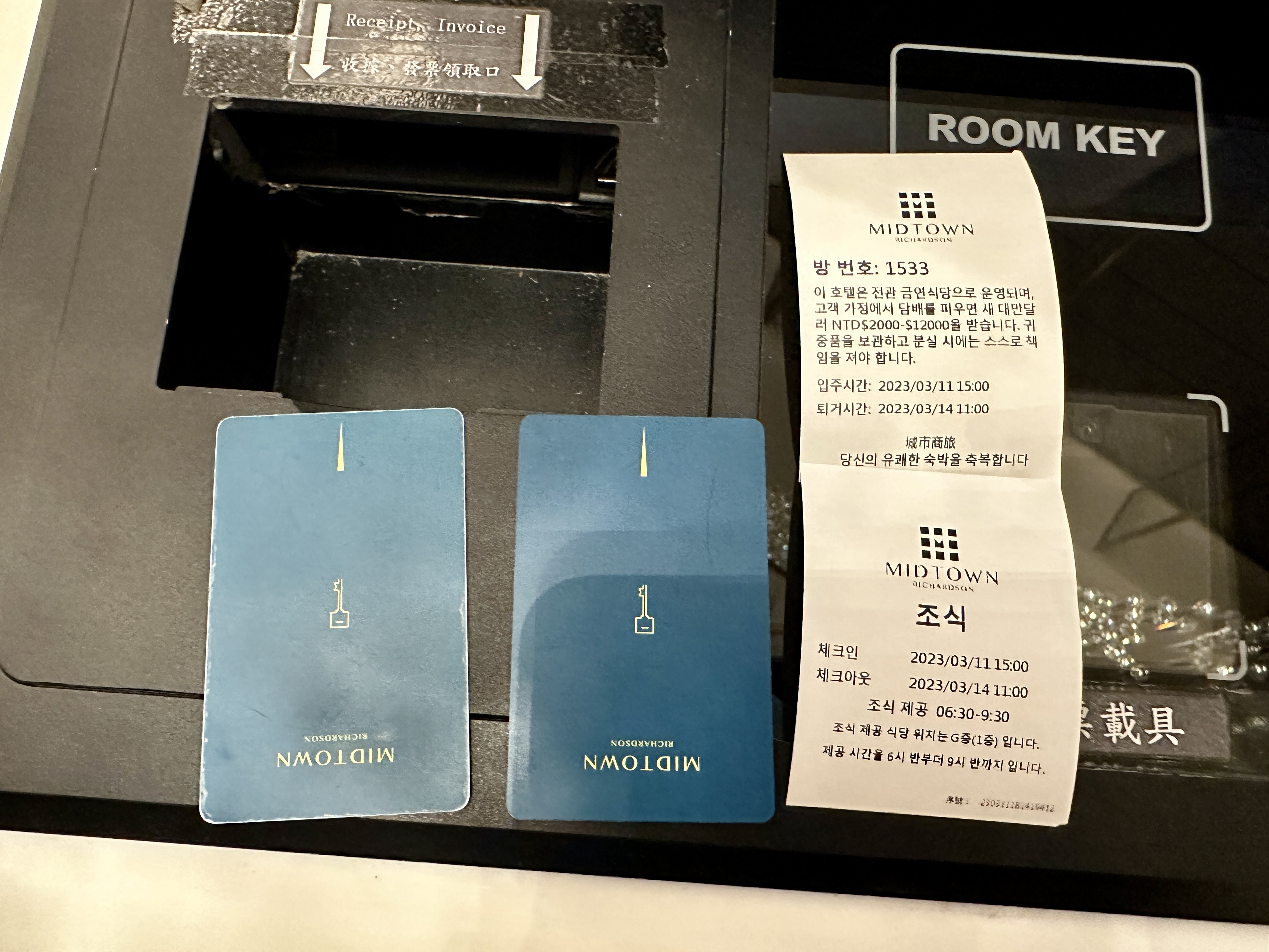 카드키 두장을 받고 체크인은 간단히 빠르게 끝나게 됩니다.