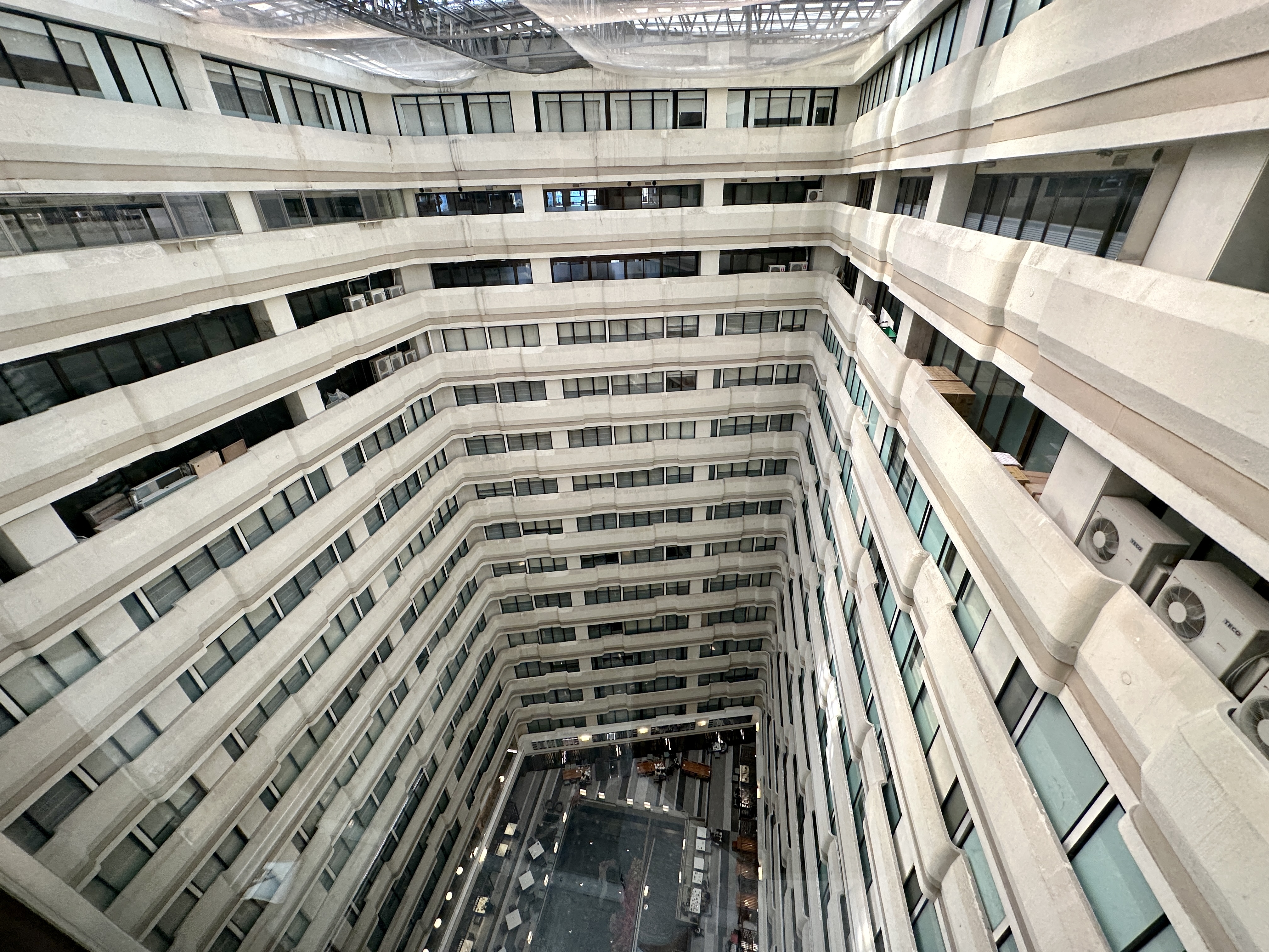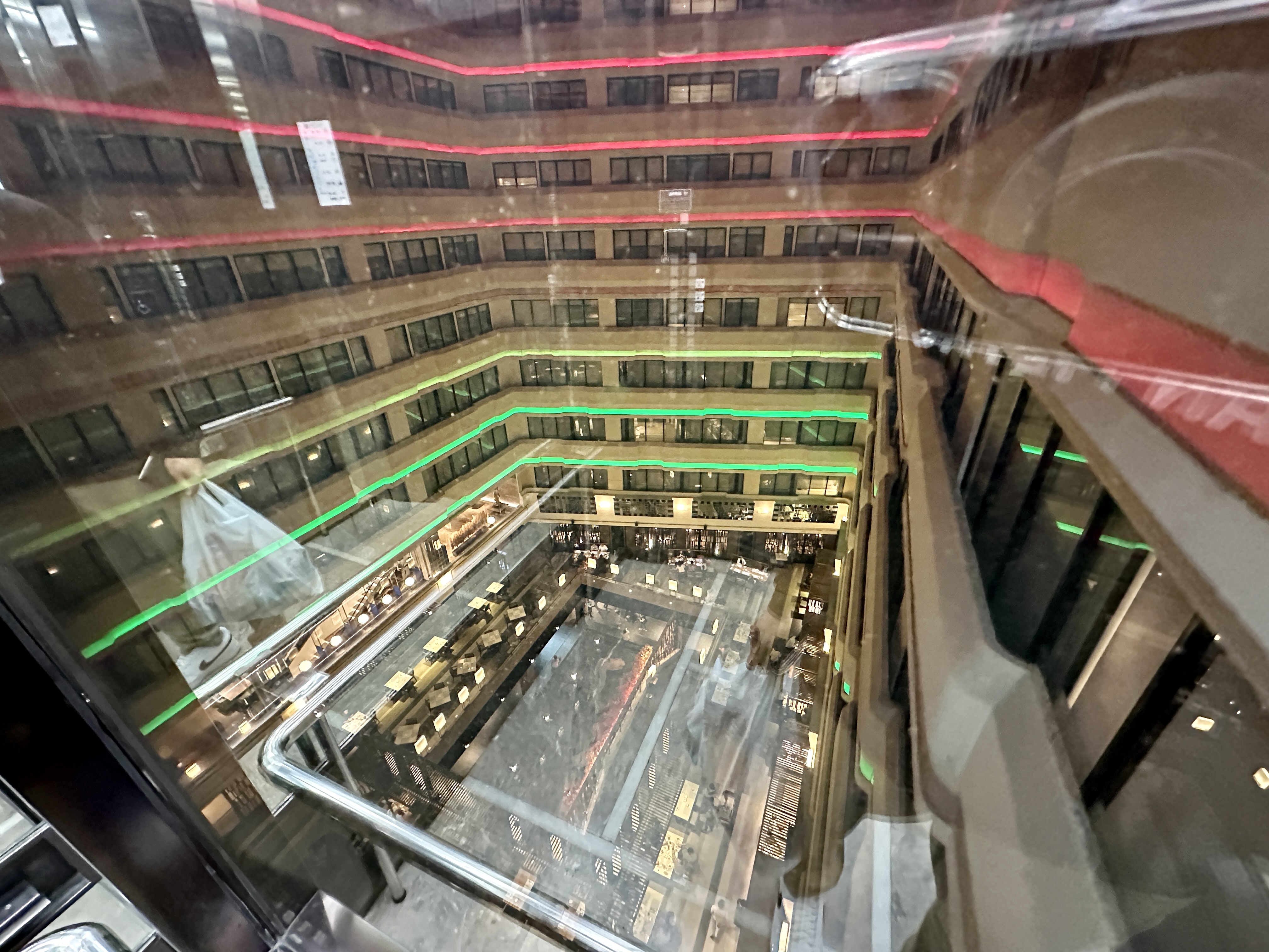 엘리베이터도 통 유리로 되어있어서 엘리베이터를 통해서 건물 1층까지 내려다 볼 수 있는