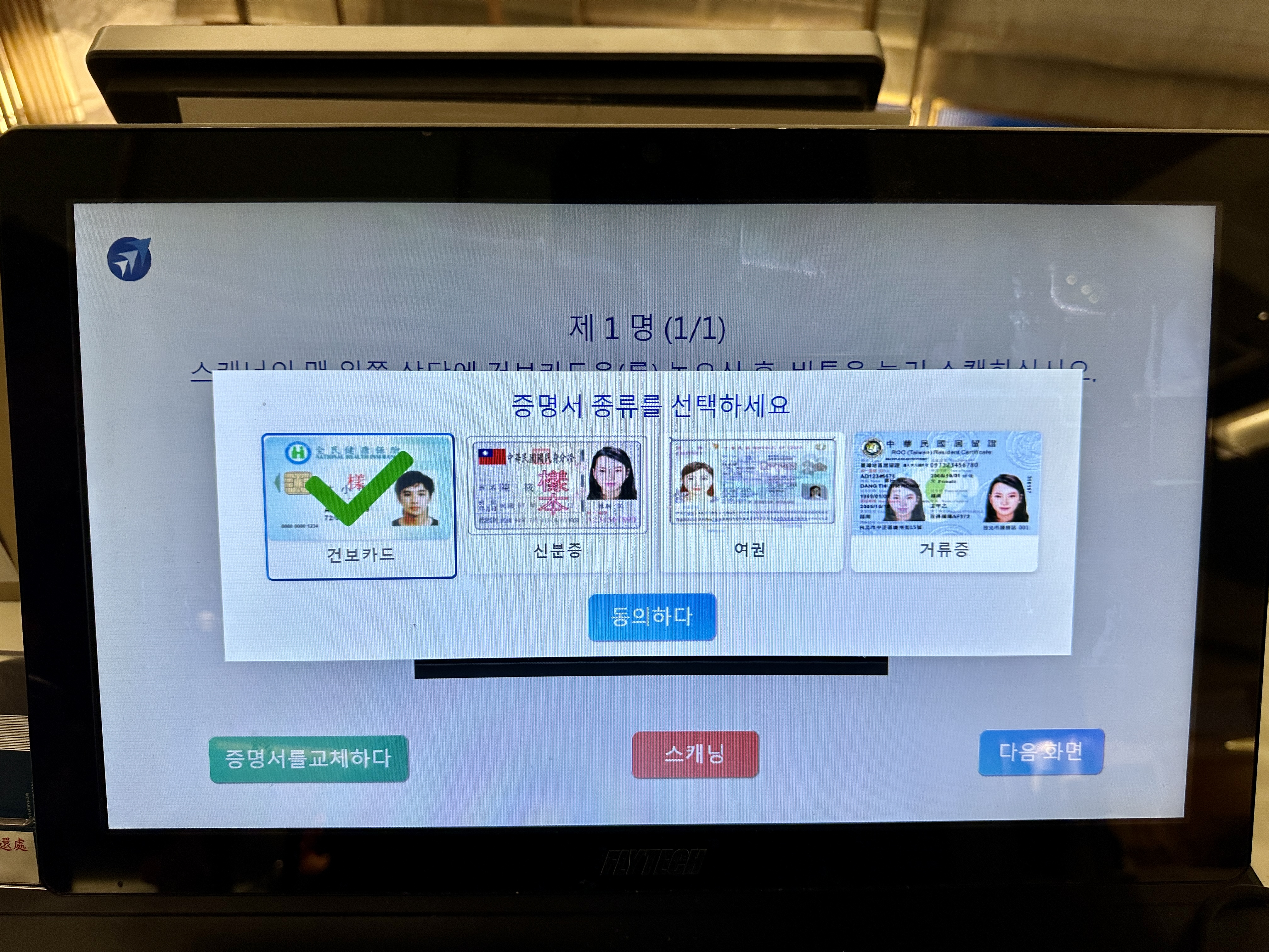 요즘의 추세를 따라 직접 여권을 스캔하며 셀프체크인을 할 수 있었습니다.