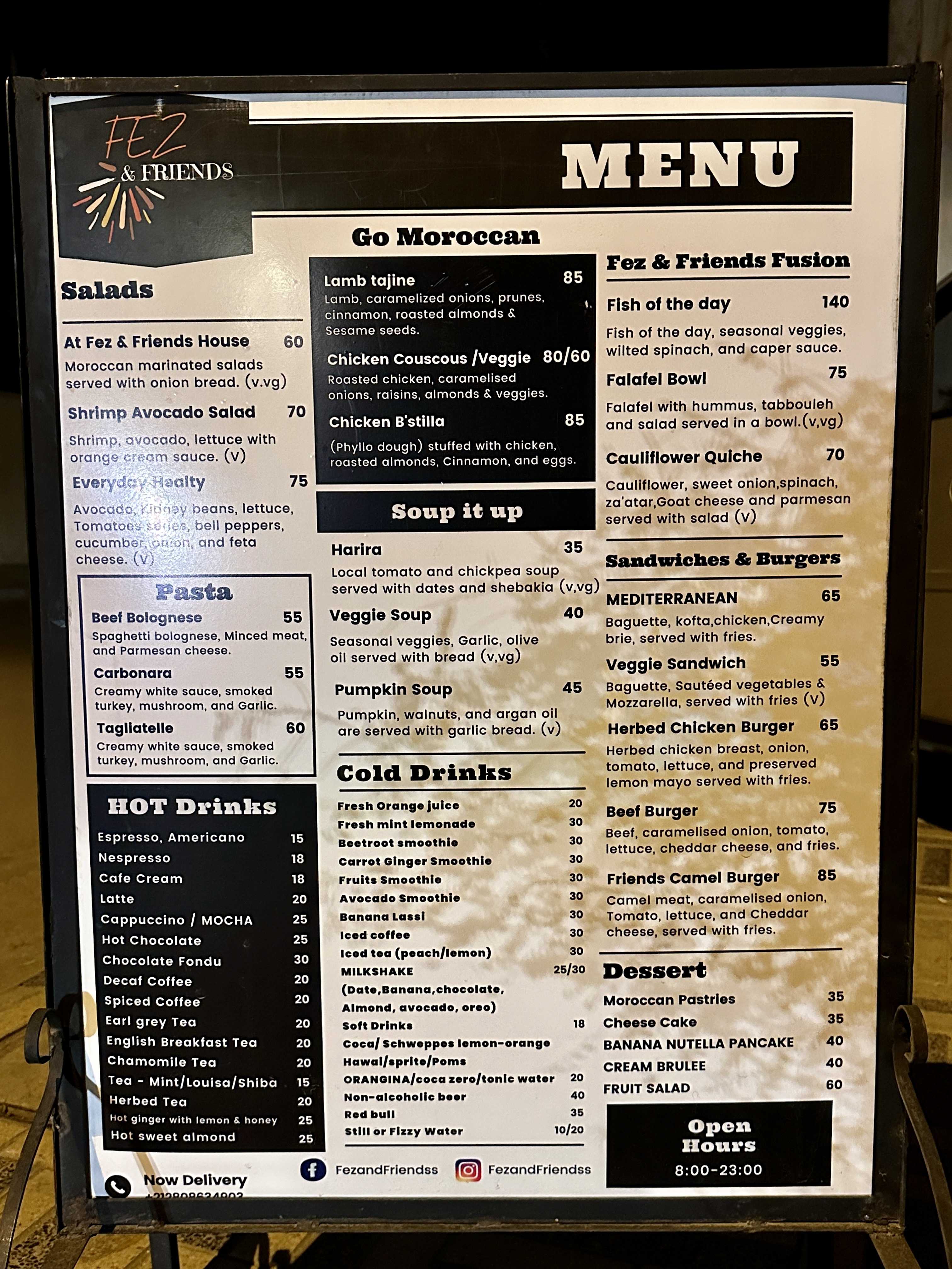 이렇게 페즈 앤 프렌즈 Fez & Friends 에서 저녁식사를 끝으로 페즈 여행은 끝이 났습니다.
