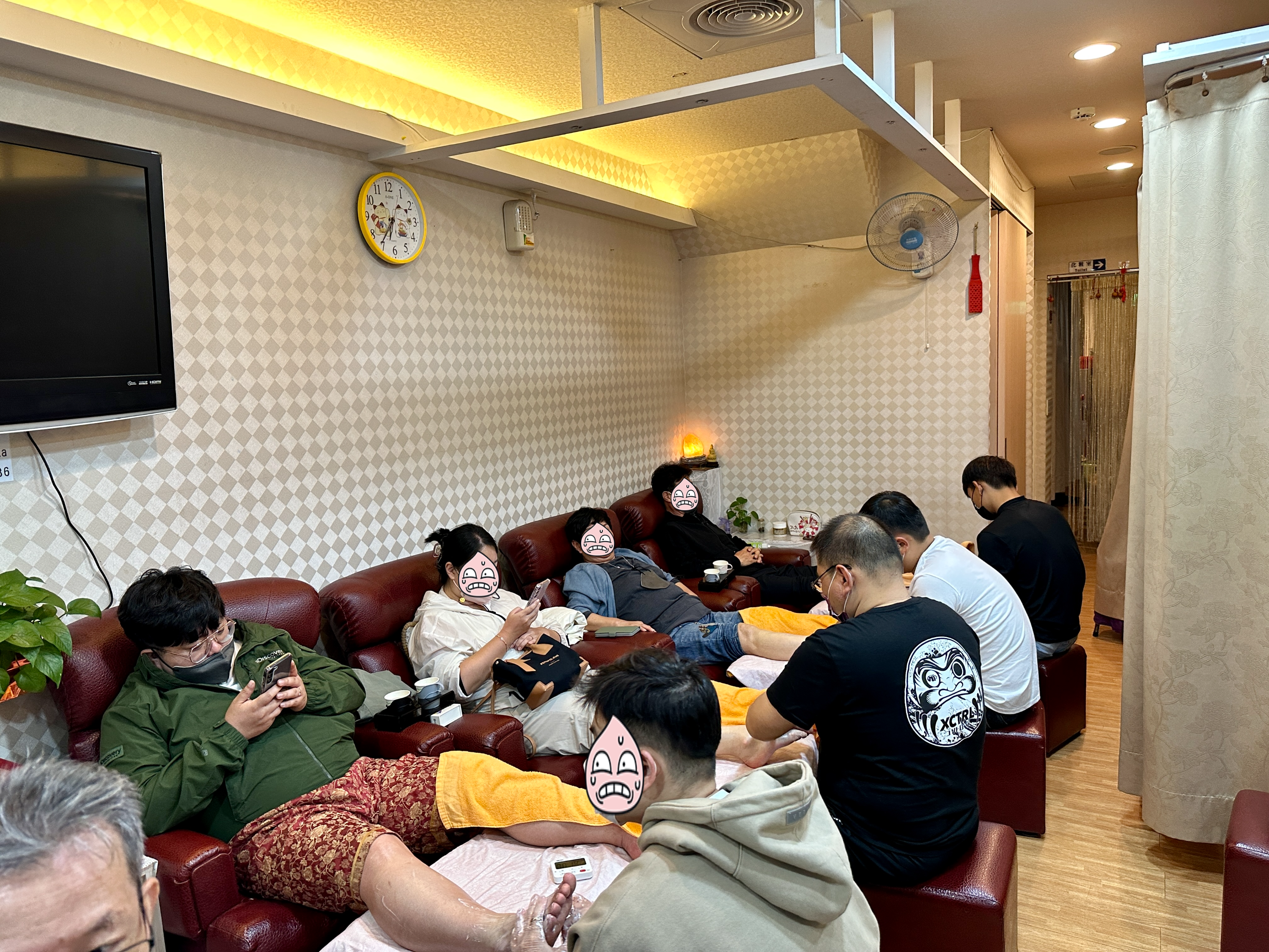 저녁 9시에 샹그릴라에 갔는데, 이미 많은 분이 마사지를 받으며 피로를 풀고 계셨습니다.
