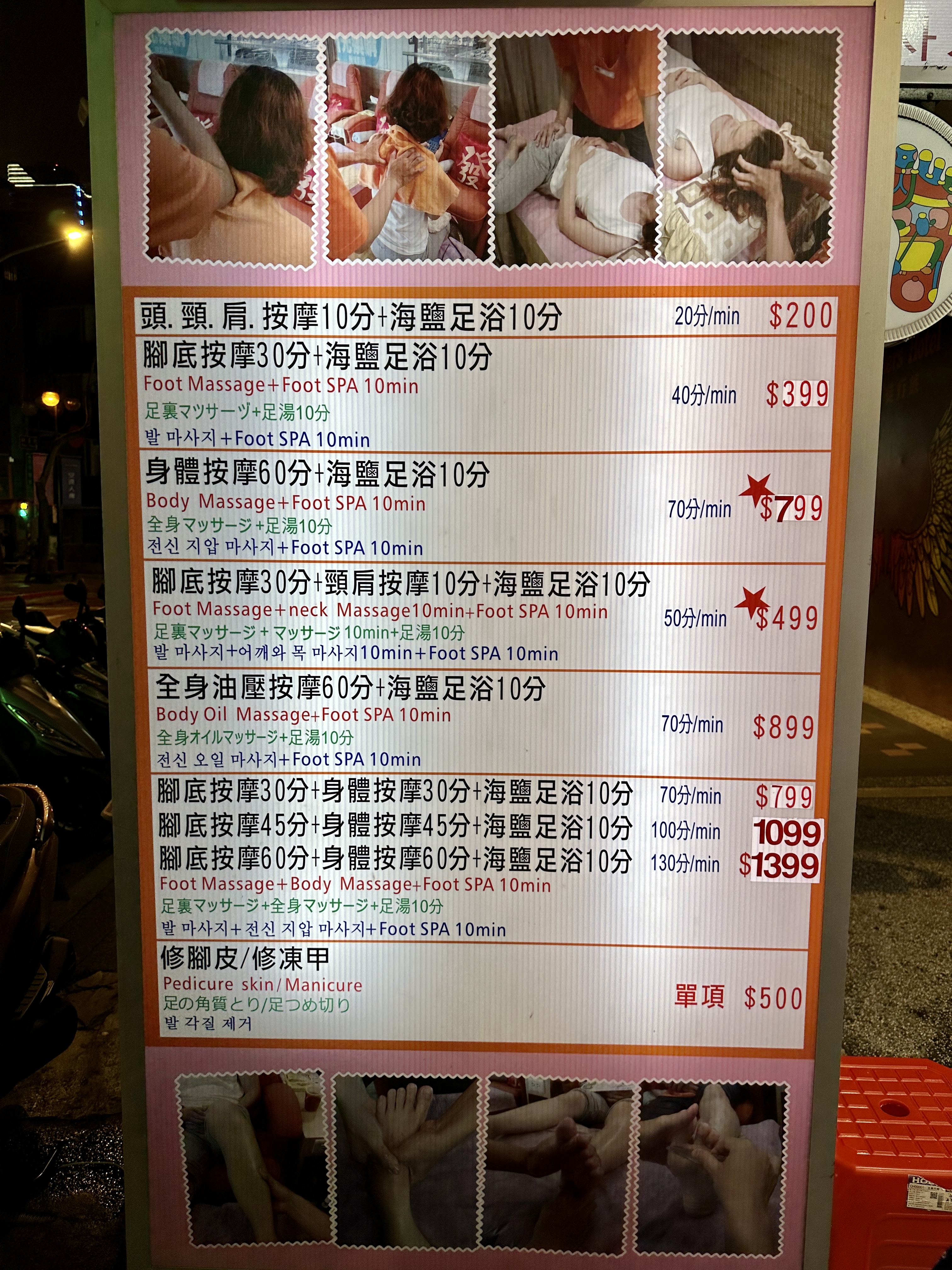 50분간 대만달러 499원 우리돈 약 22,000원으로 피로를 풀고 여행 체력을 재충전 했습니다.