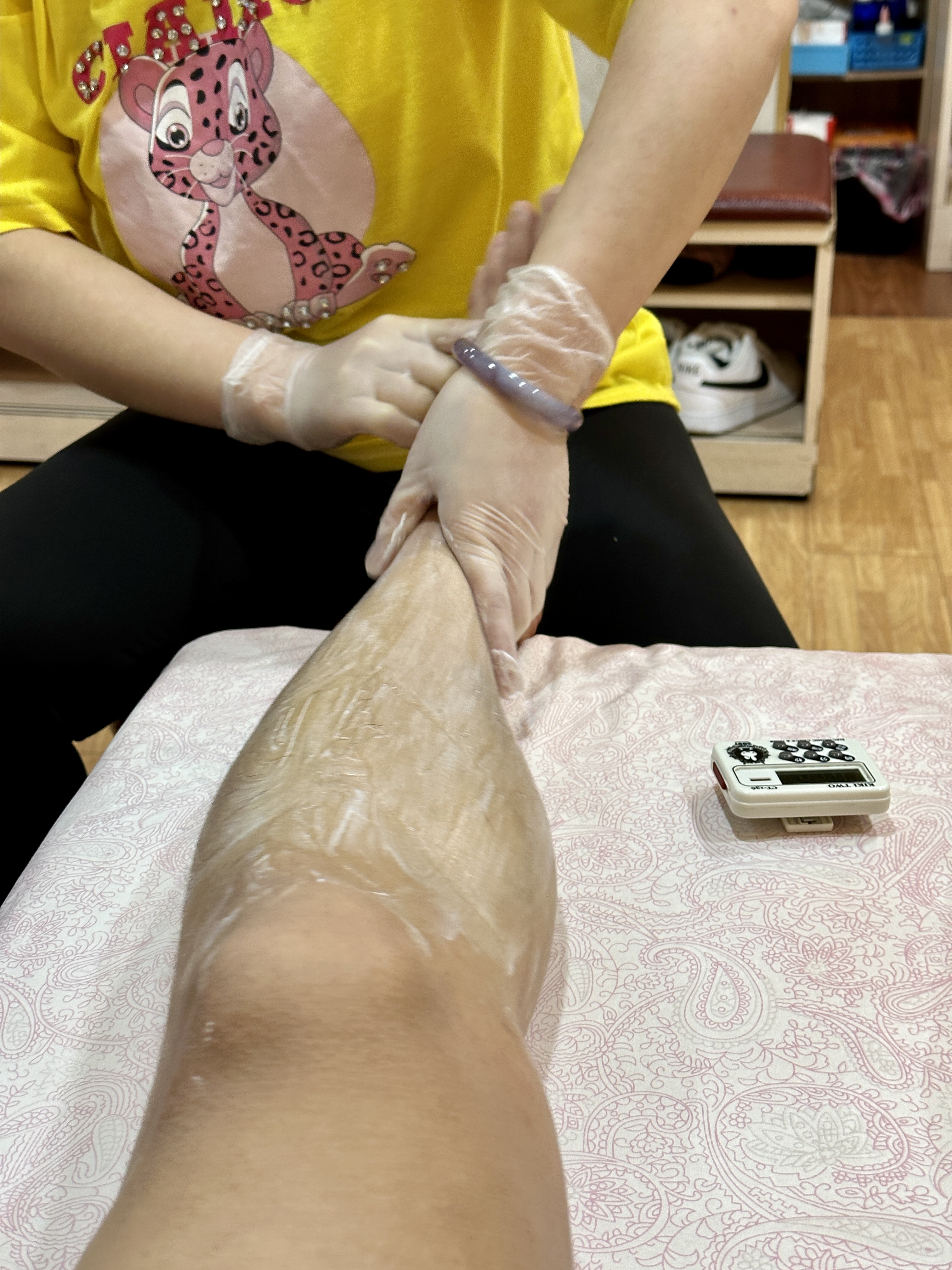 위생장갑을 껴고 마사지 크림을 바르며 지압식으로 마사지가 진행되는데,