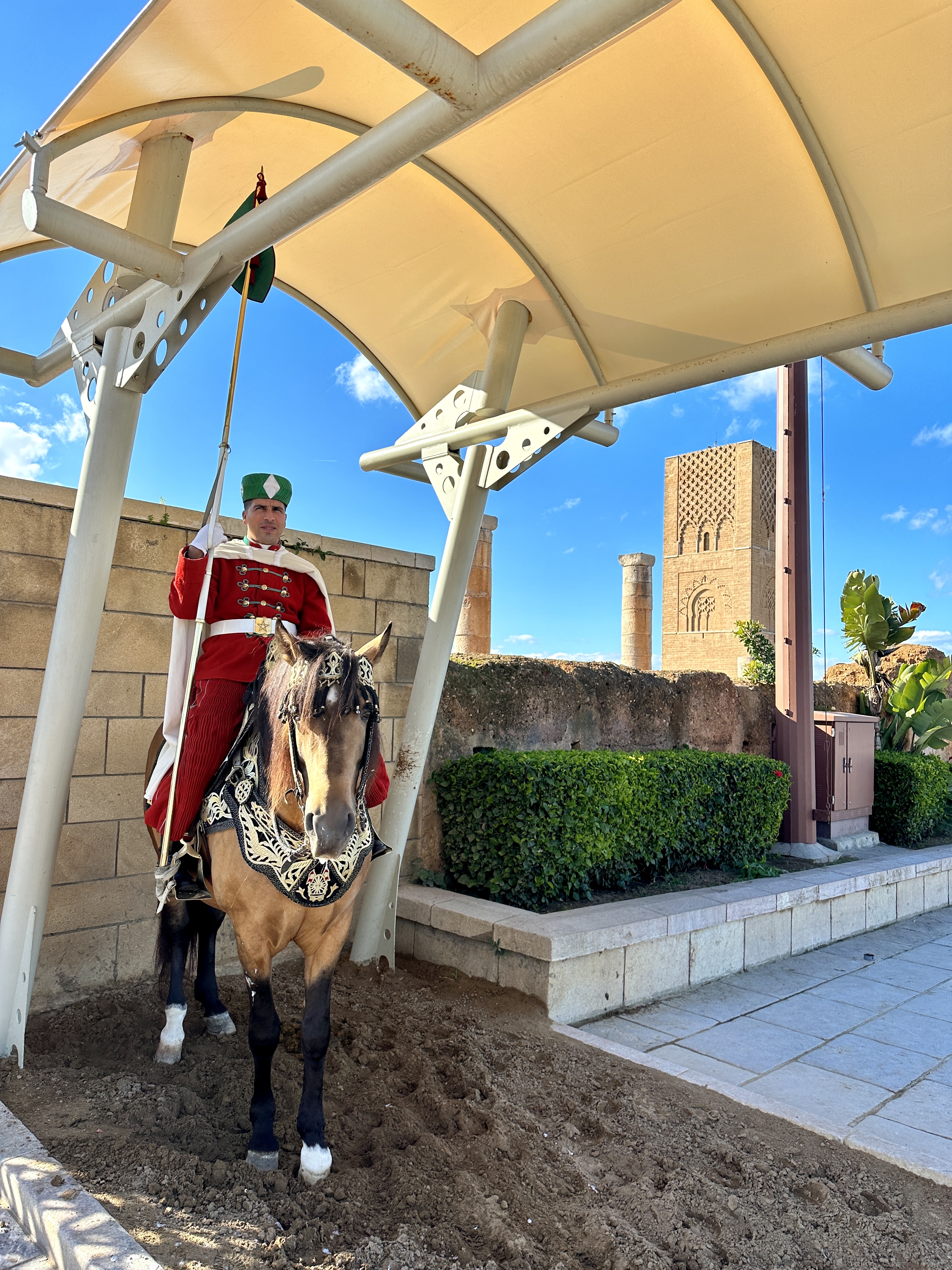 하산 타워 양쪽 입구에는 말을 타고 있는 근위병이 문을 지키고 있습니다.