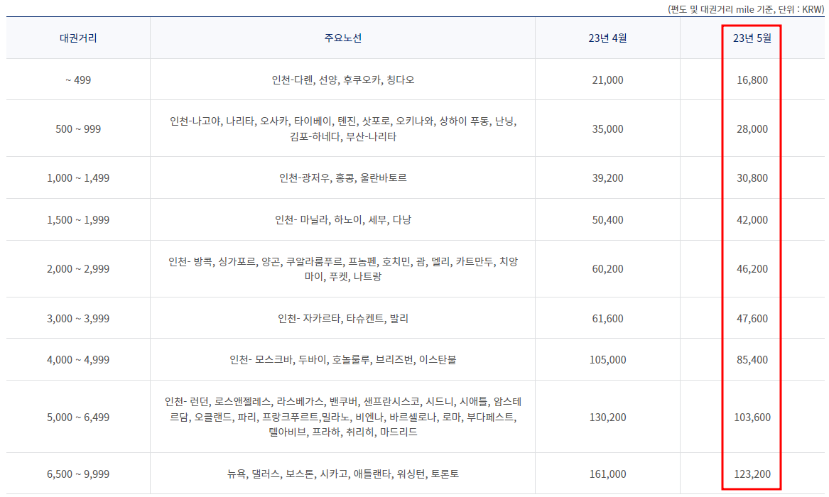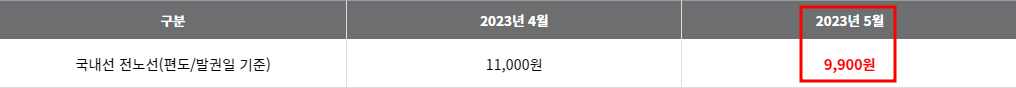 - 발권 적용일 : 2023년 5월 1일 ~ 2023년 5월 301(발권일 기준)