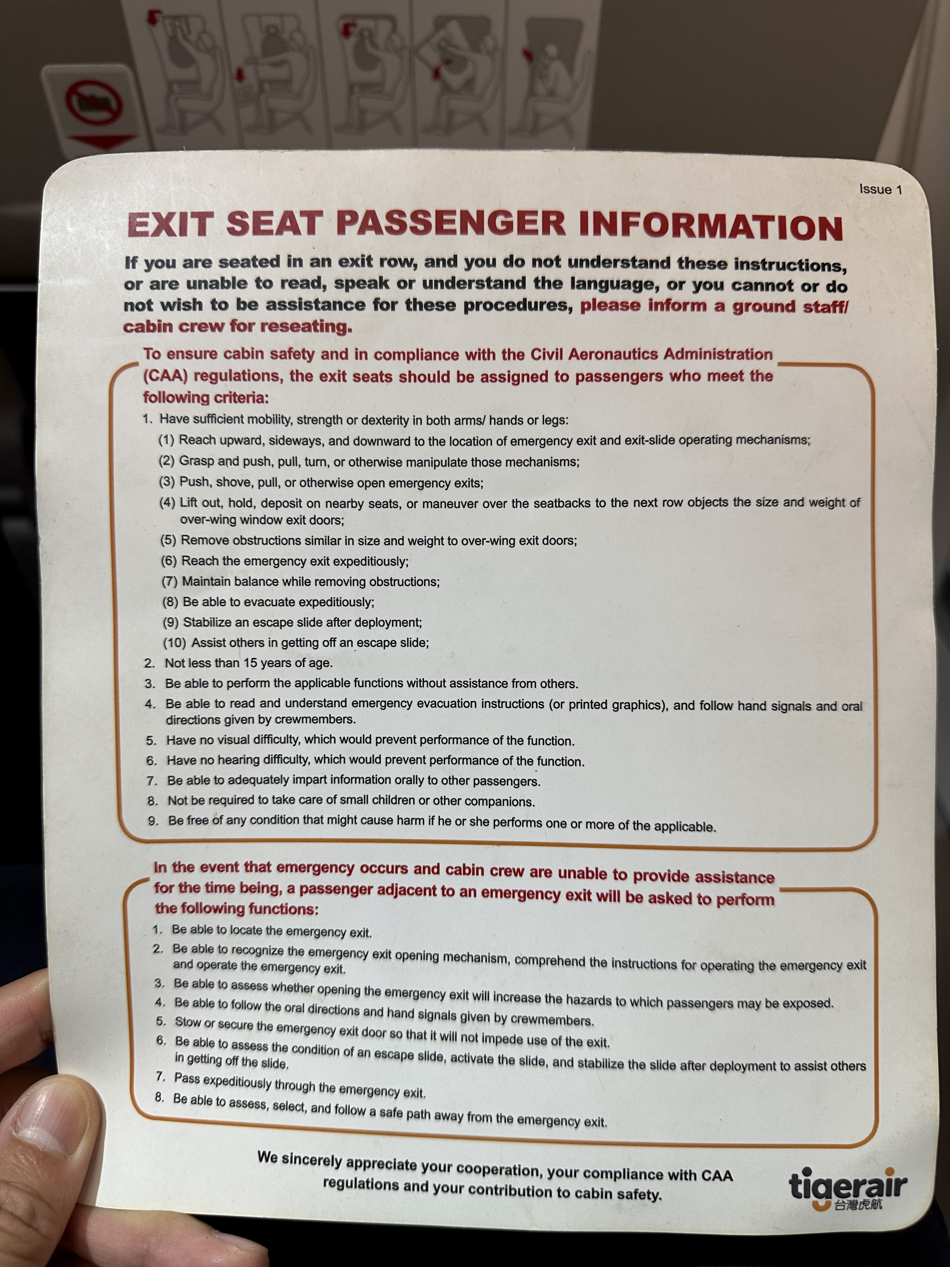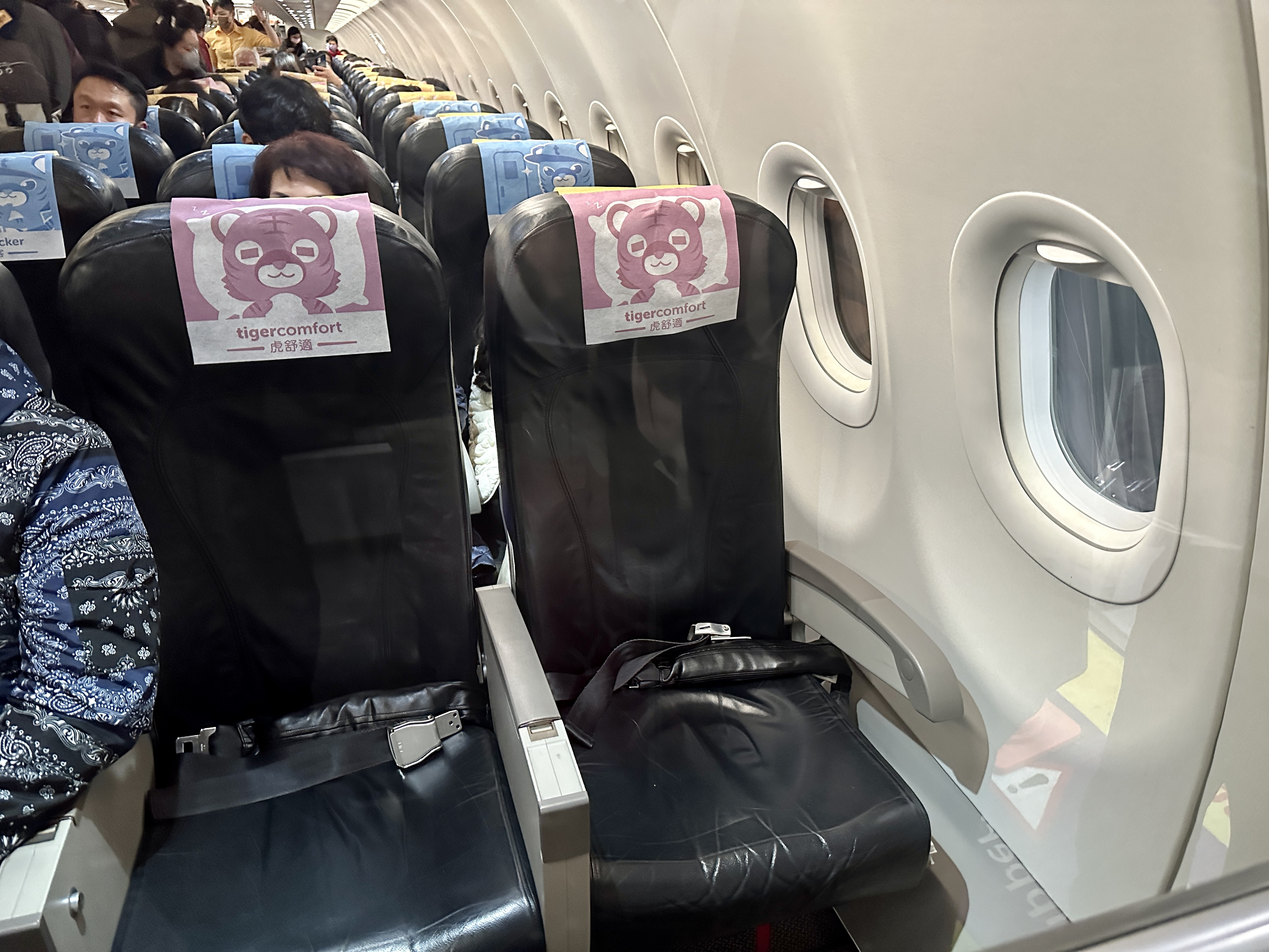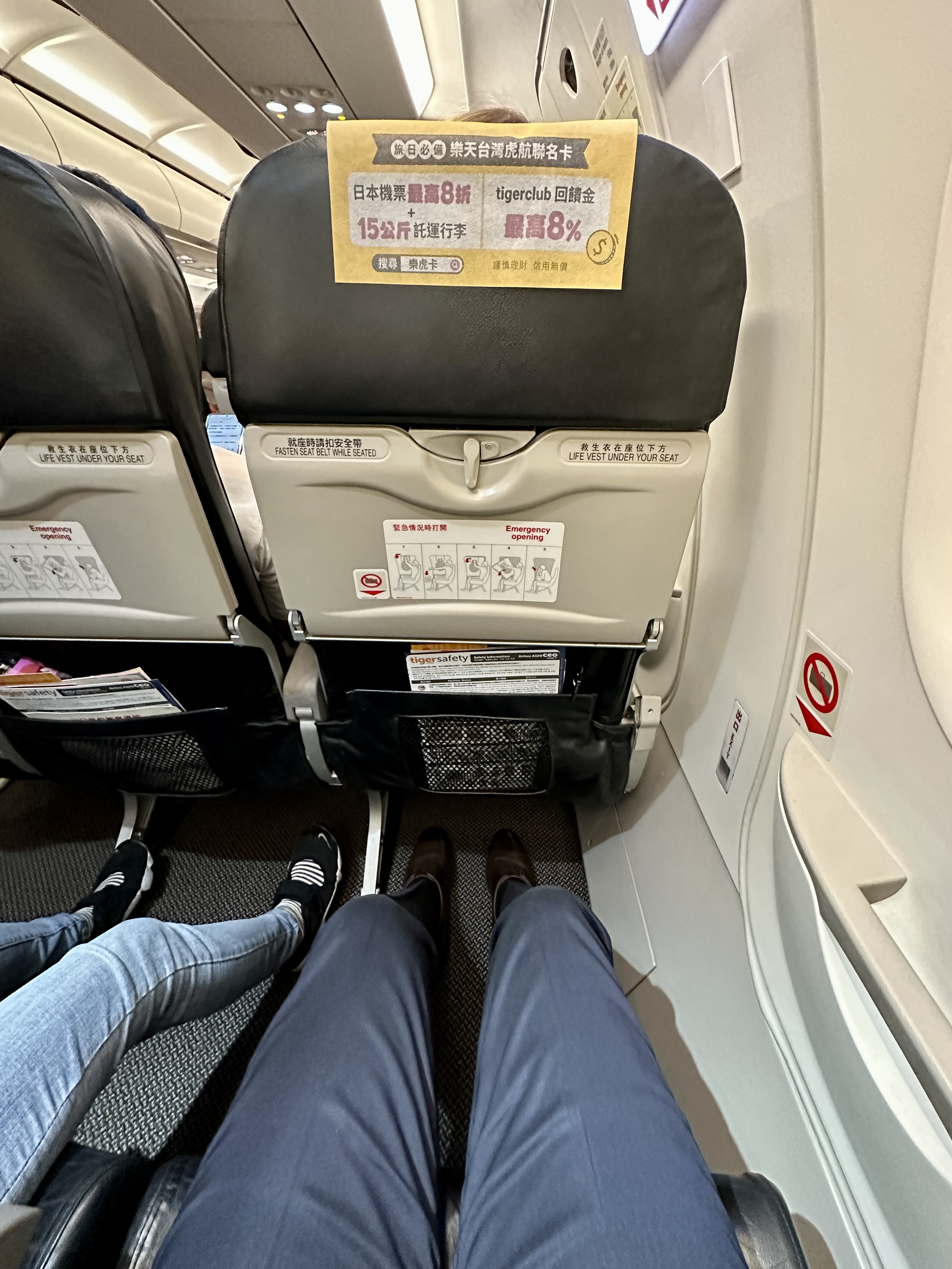 맨 앞자리에는 타이거 콤포트라는 넓은 좌석이 있고, 또 비상구좌석에 앉으면 편하게 갈 수 있습니다.