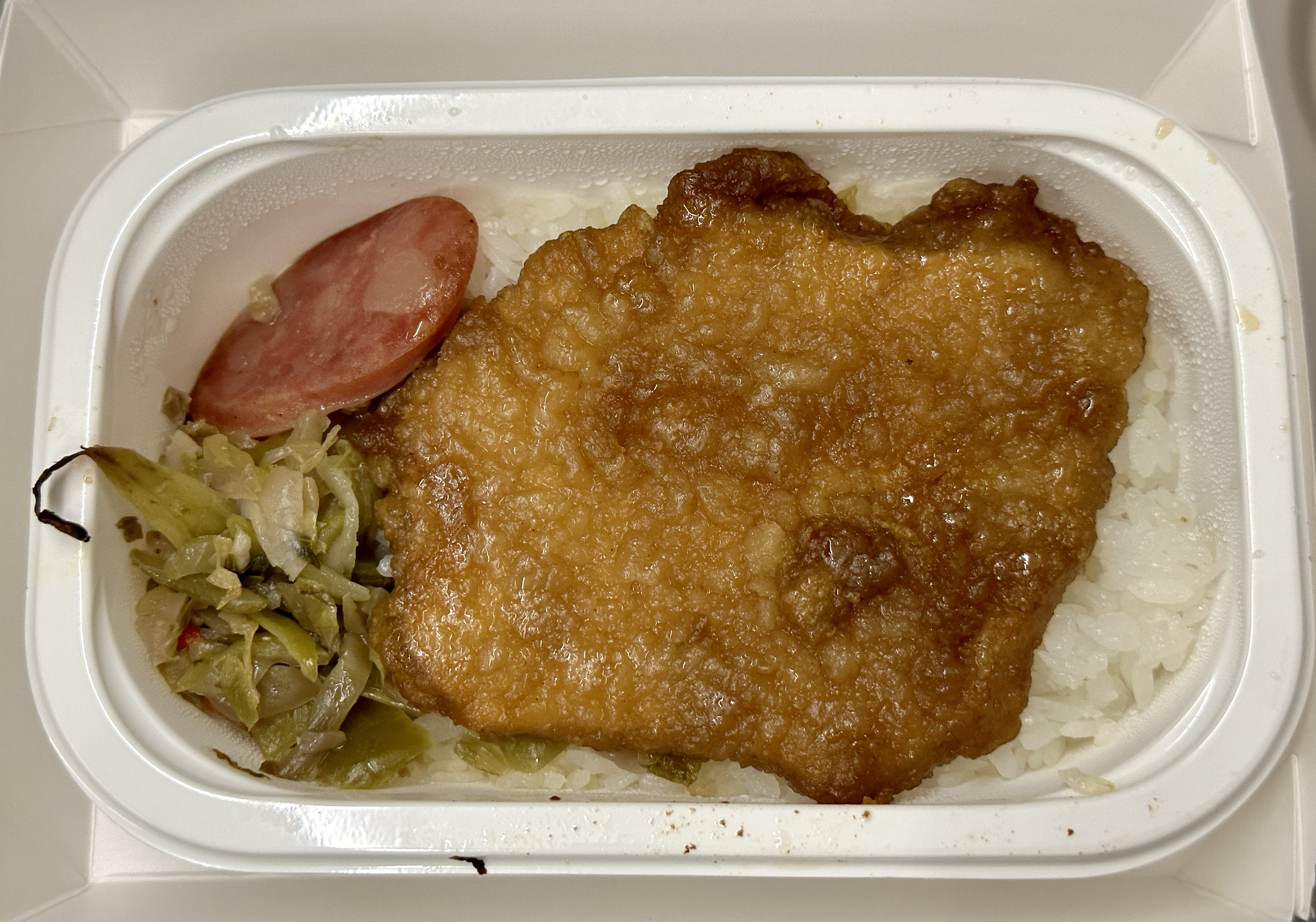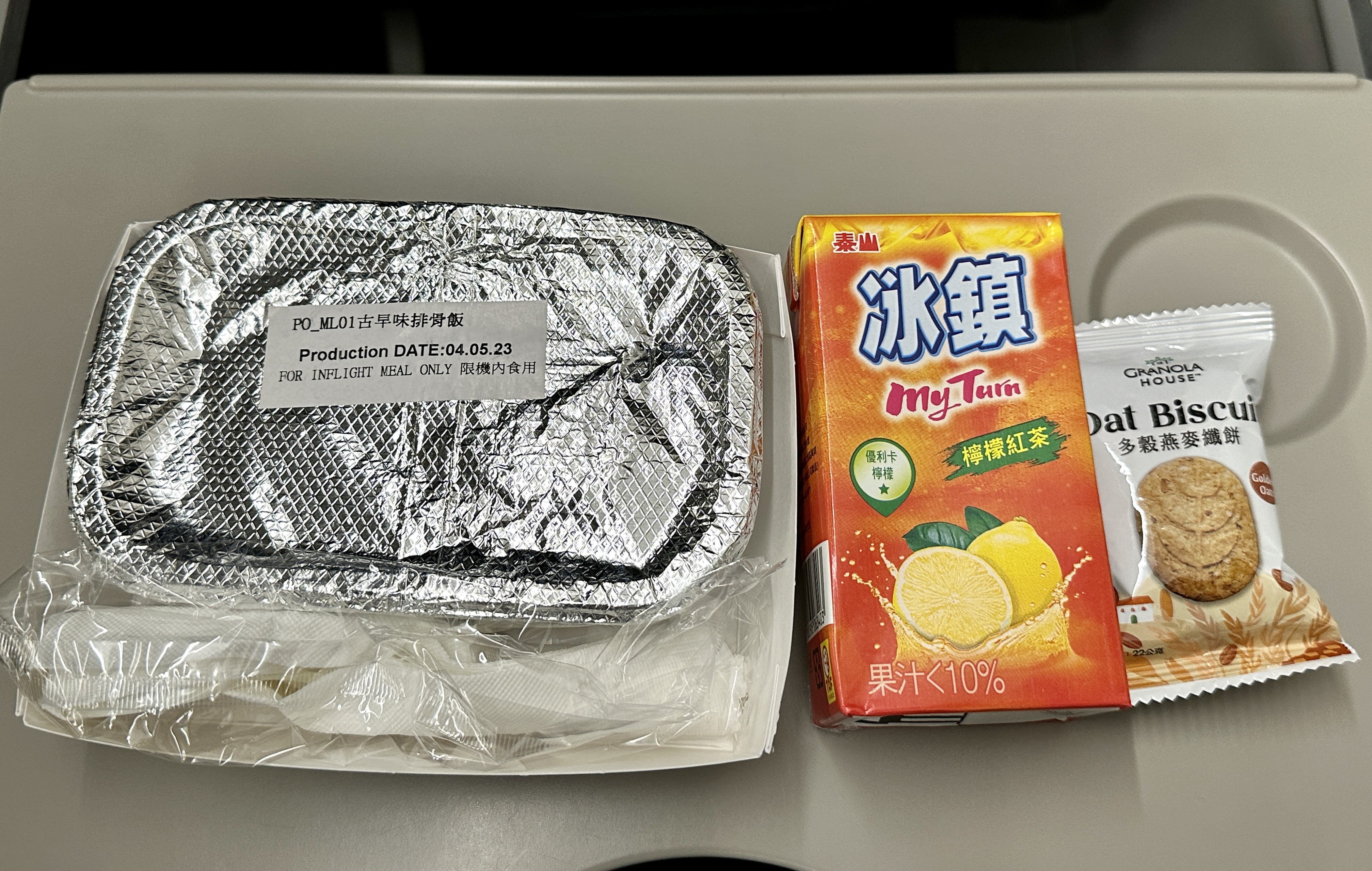 이 날 Braised Pork Chop with Rice 메뉴를 주문해서 먹었는데, 쥬스와 비스켓까지 나왔습니다.