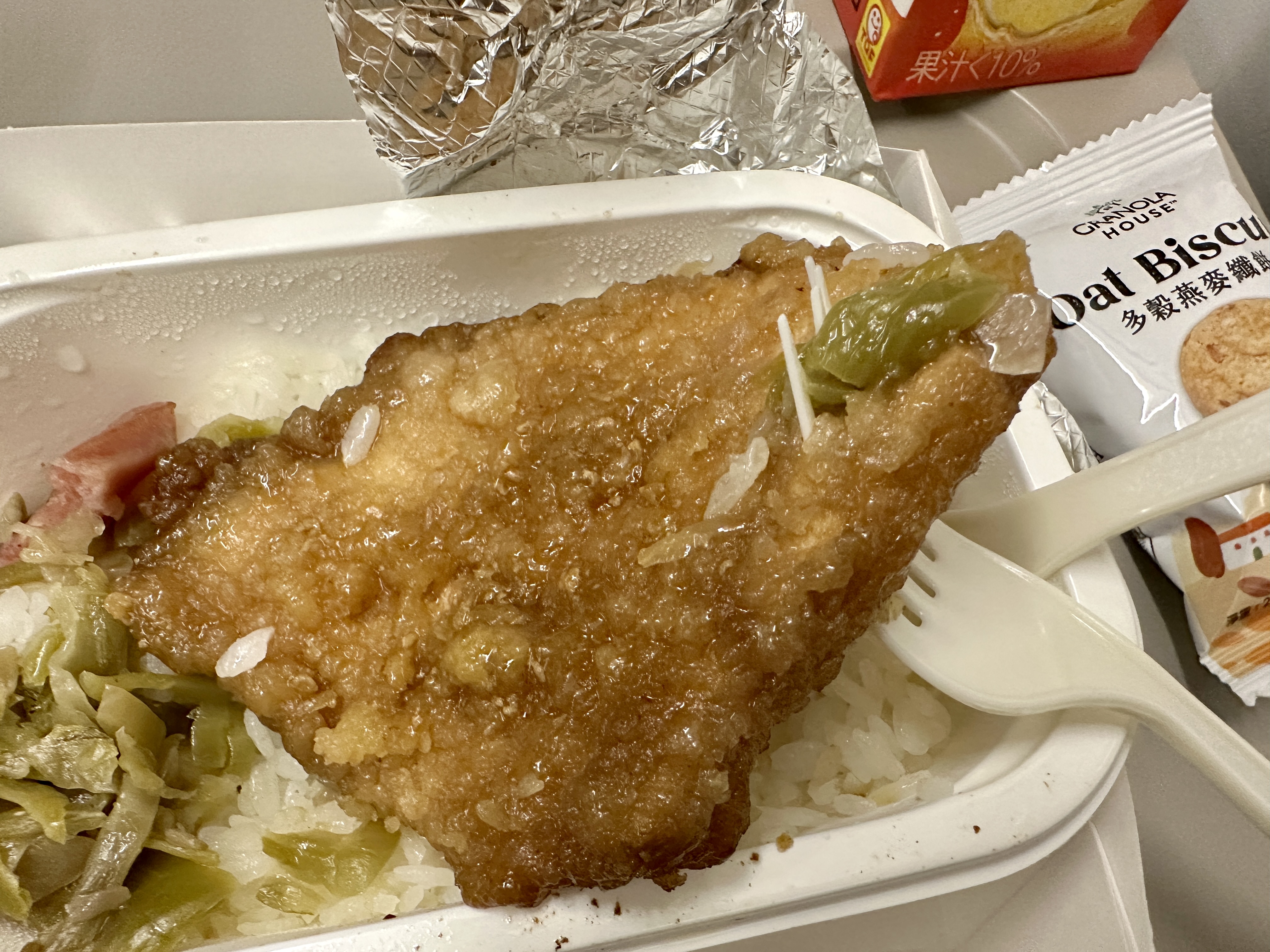 이 날 Braised Pork Chop with Rice 메뉴를 주문해서 먹었는데, 쥬스와 비스켓까지 나왔습니다.