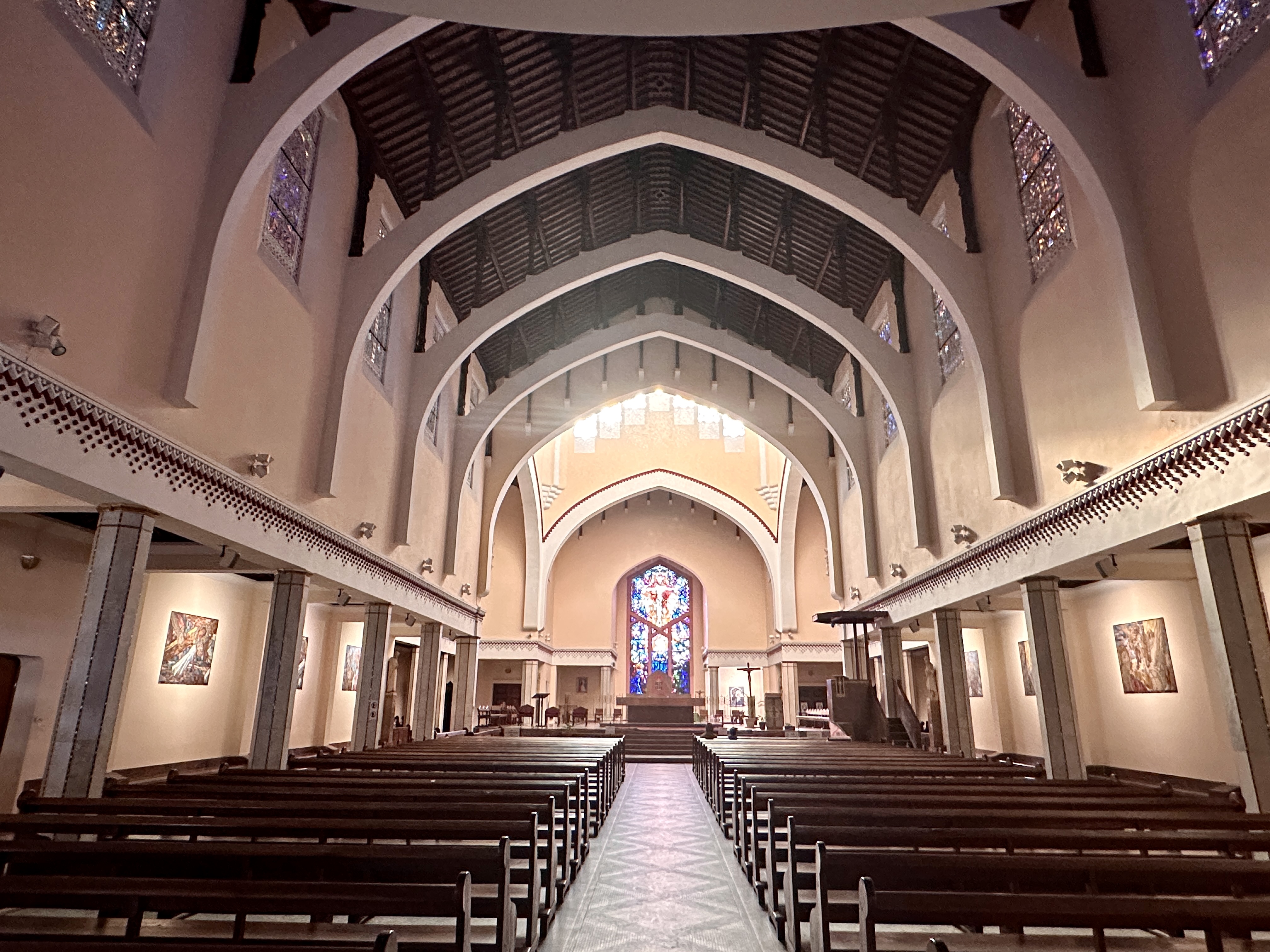 라바트 성 베드로 대성당의 본당은 높은 아치형 천장과 화려한 장식으로 특히 인상적입니다.