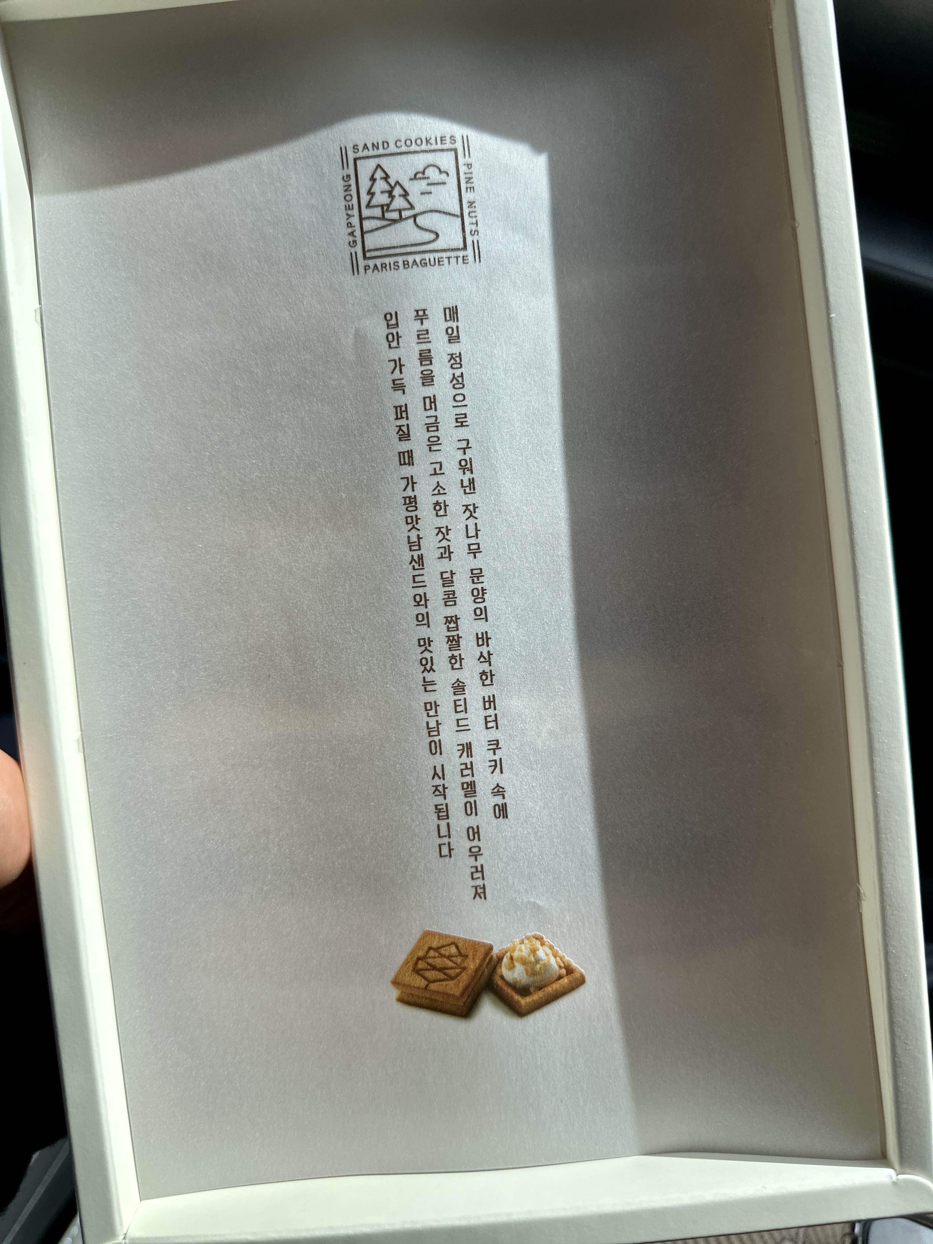 매일 정성으로 구워낸 잣나무 문양의 바삭한 버터 쿠키속에 푸르름을 머금은 고소한 잣과