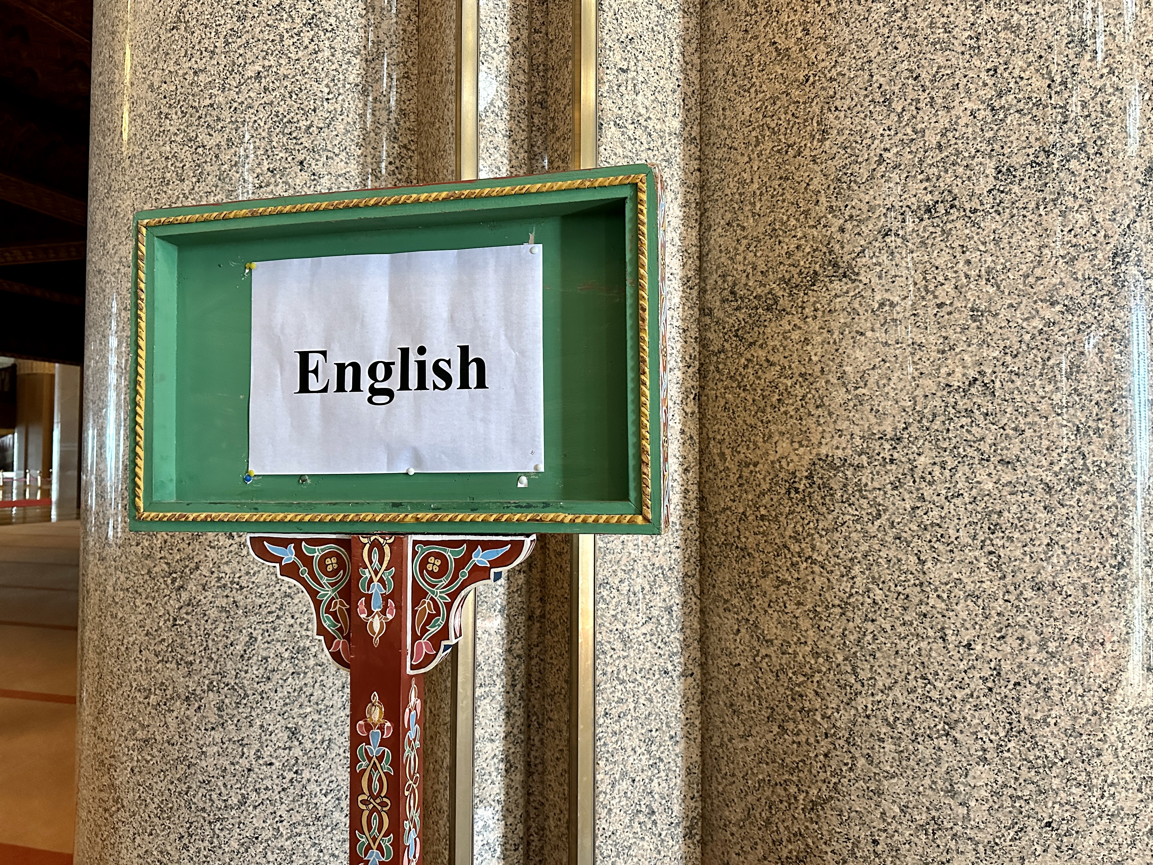 여러가지 언어로 가이드가 언어에 맞춰 하산 2세 모스크 투어 설명을 해줍니다.