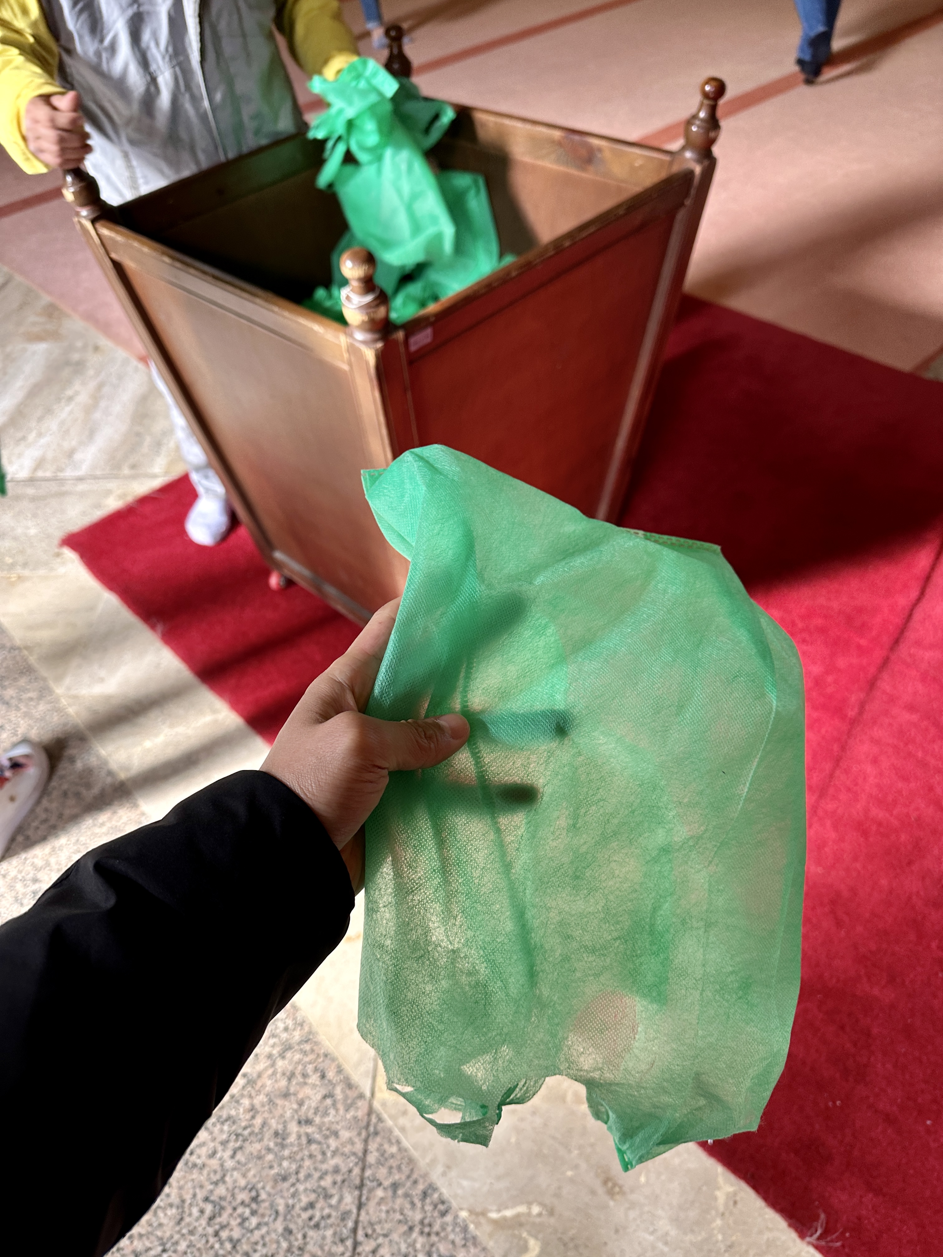 신발을 벗어 실내주머니에 들고 투어내내 맨발로 다녀야합니다.