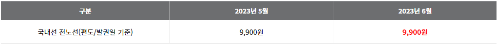 - 발권 적용일 : 2023년 6월 1일 ~ 2023년 6월 31일 (발권일 기준)