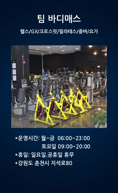 이것으로 춘천 헬스장 팀바디매스 소개를 마칩니다.