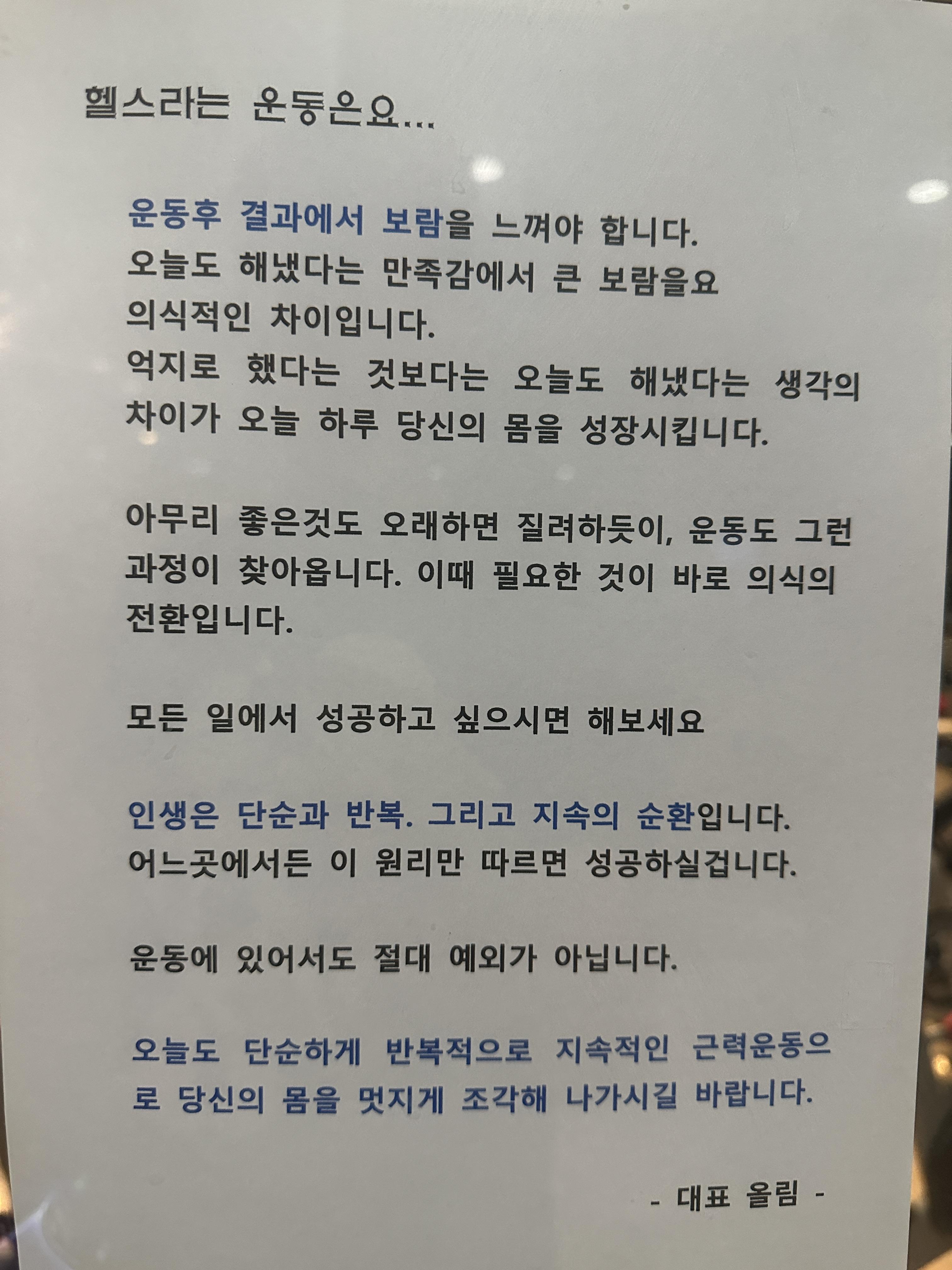 헬스라는 운동을 우리의 인생에 빗대어 꾸준함을 강조한 글에 큰 공감이 되었습니다.