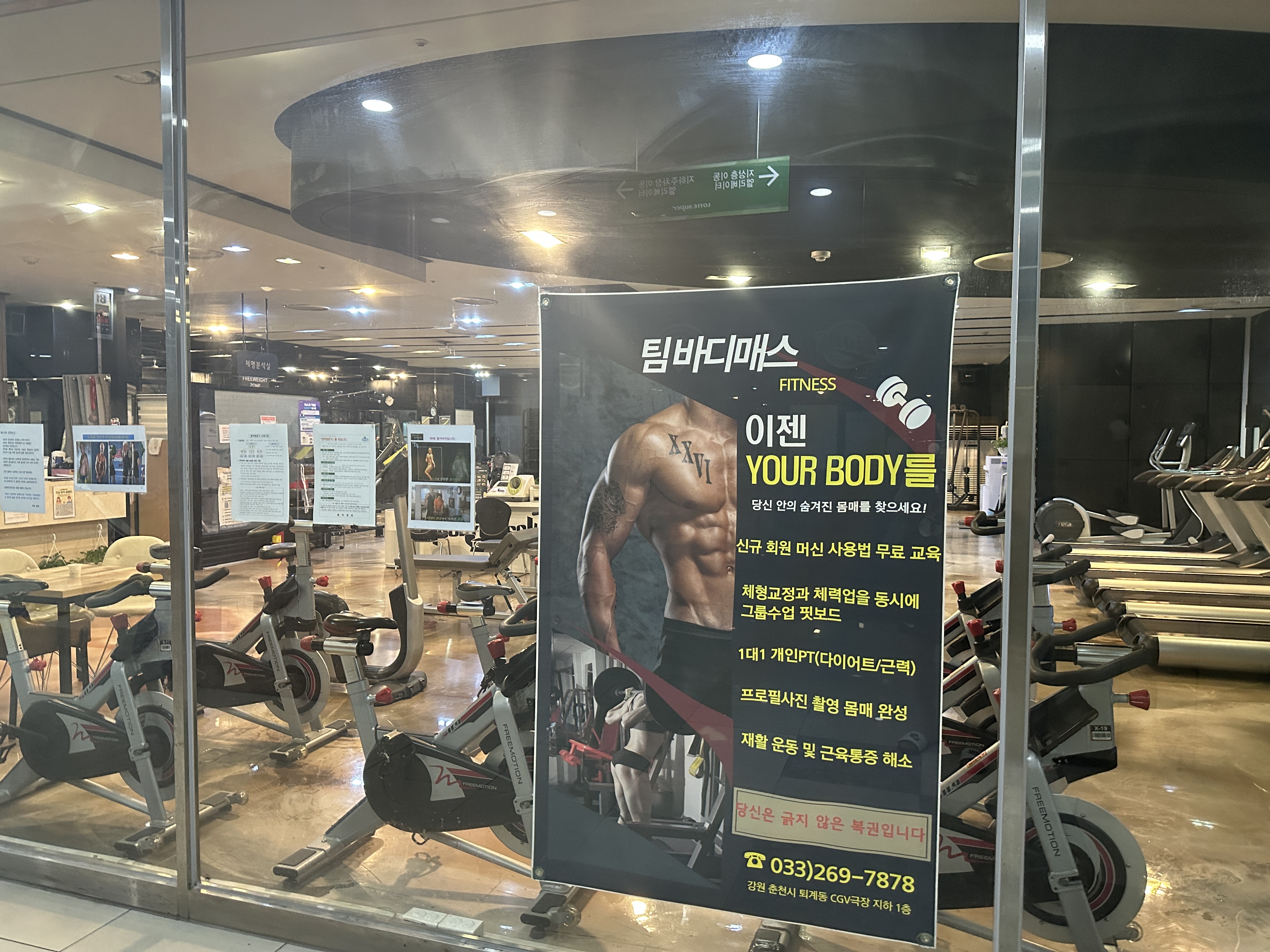 춘천 퇴계동 헬스장 팀바디매스는 투탑시티 지하에 위치하고 있습니다.
