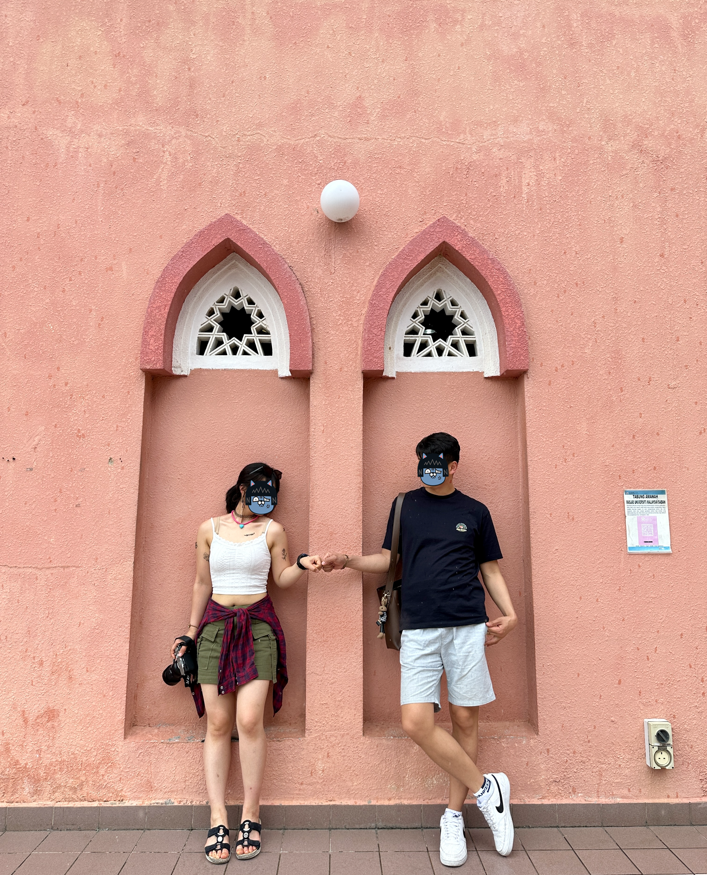 내부에는 들어갈 수 없었지만 핑크 벽면 여기저기 포토스팟이 많아서
