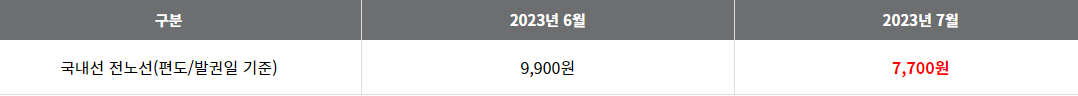 - 발권 적용일 : 2023년 7월 1일 ~ 2023년 7월 31일 (발권일 기준)