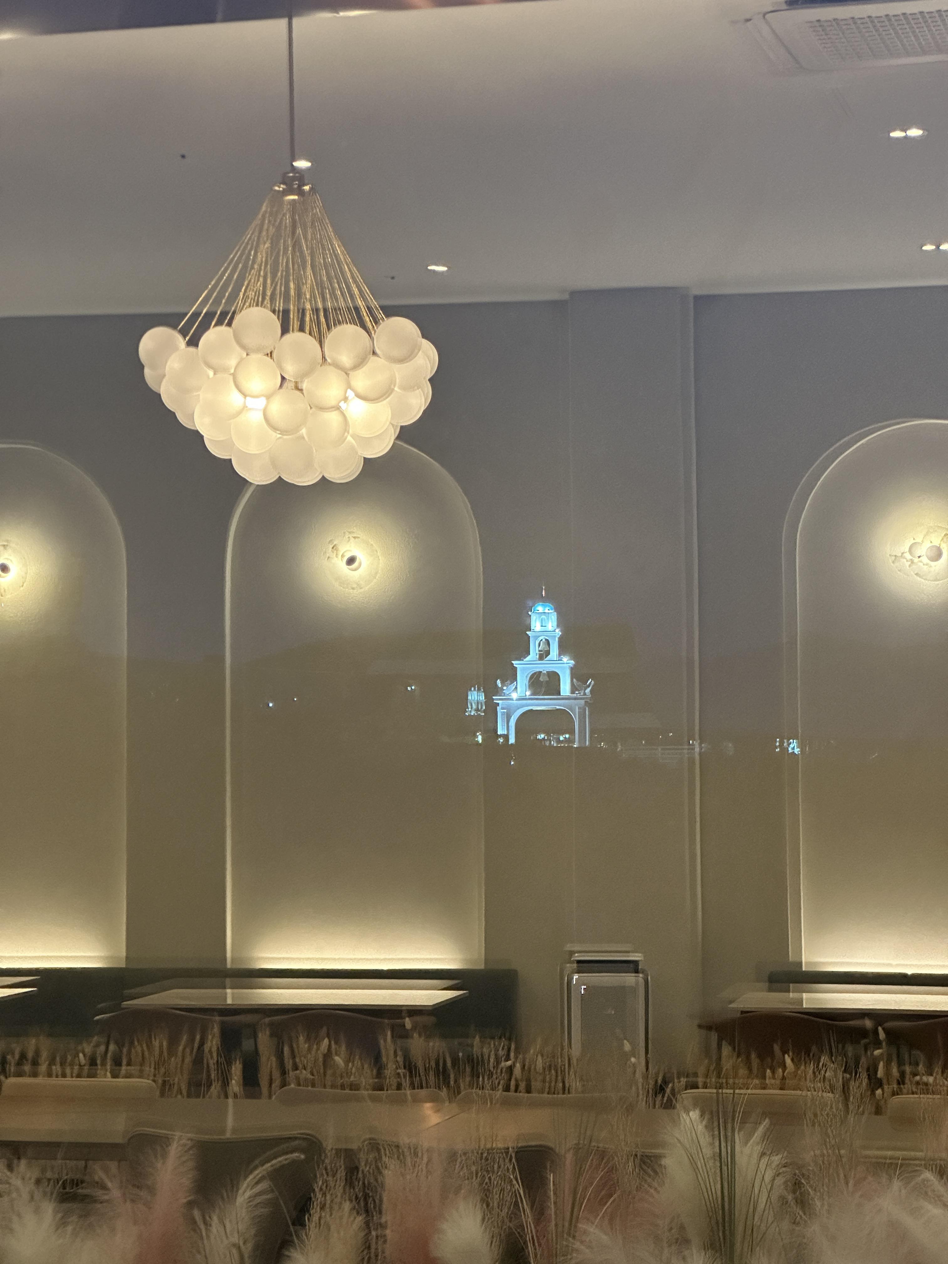 옆 유명카페인 산토리니의 랜드마크 격인 하얀 건물도 잘 보이고 불이 켜진 춘천 시내를