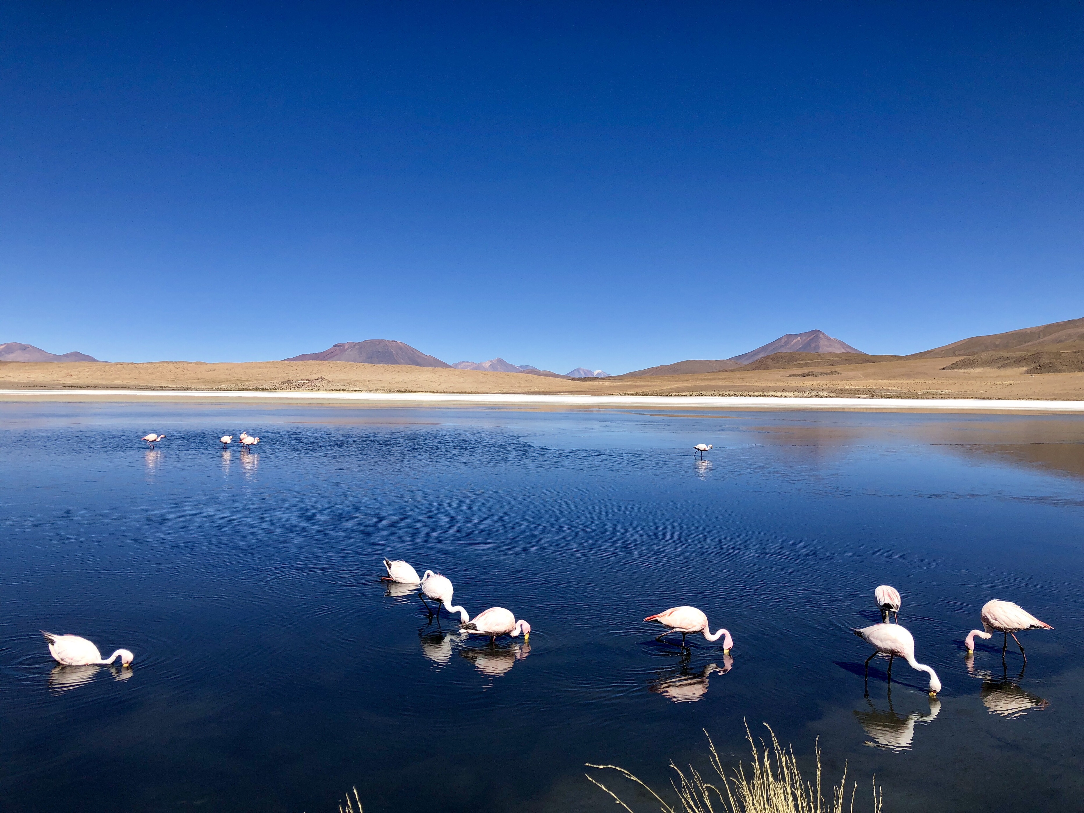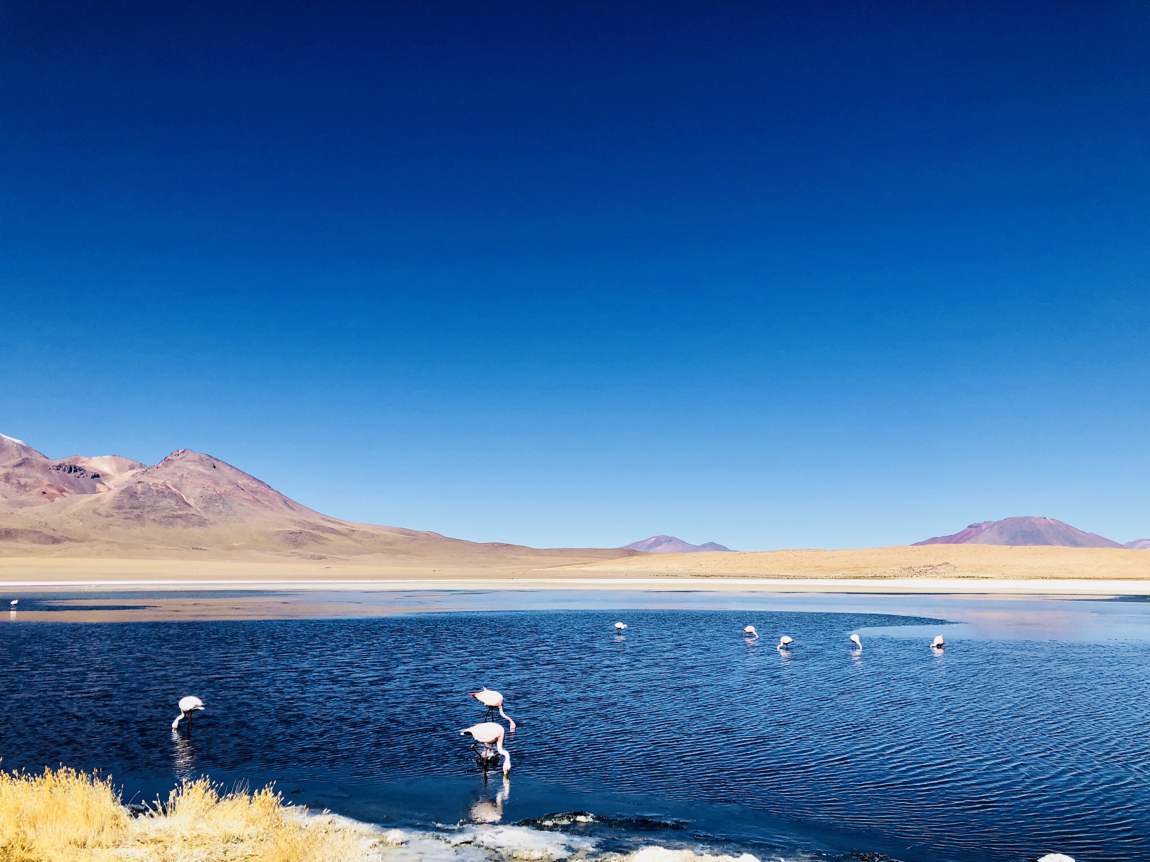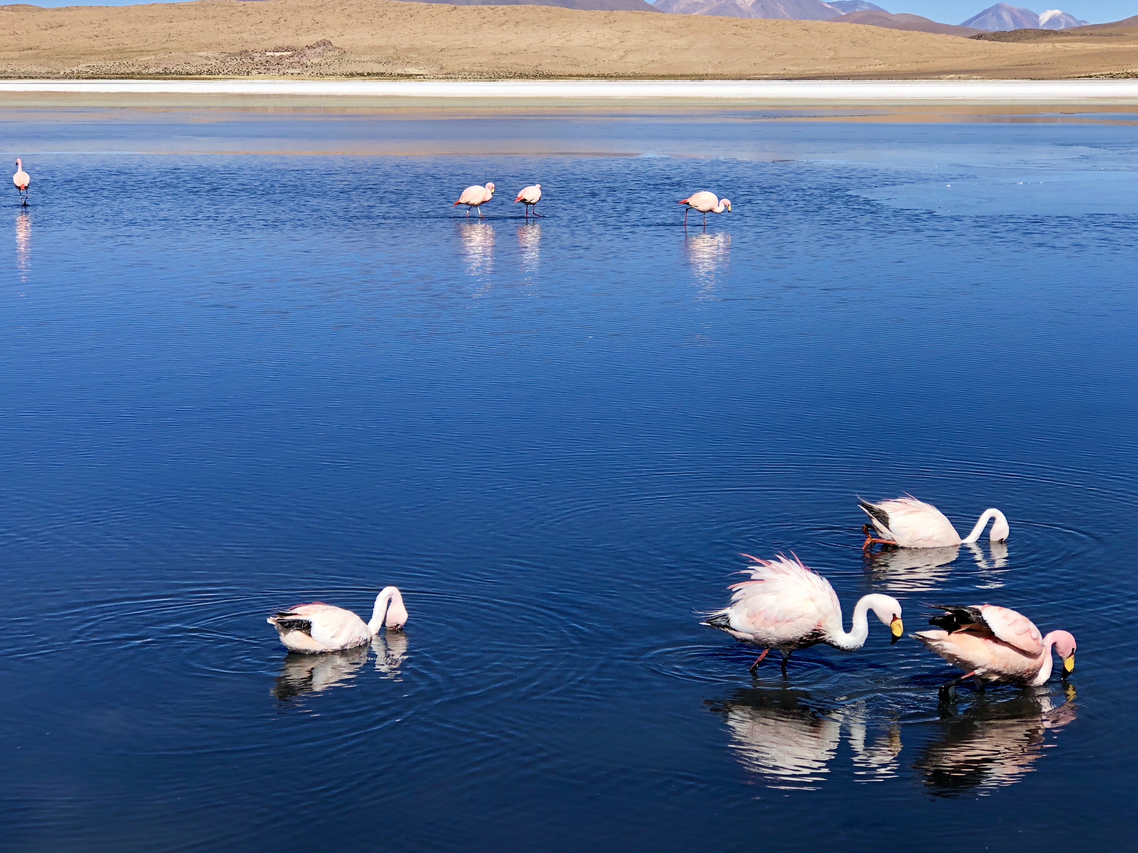 대자연을 느낄수 있는 산에 둘러쌓인 얕은 호수에서 플라밍구들이 자유롭게 먹이도 먹으며 쉬고 있었고,