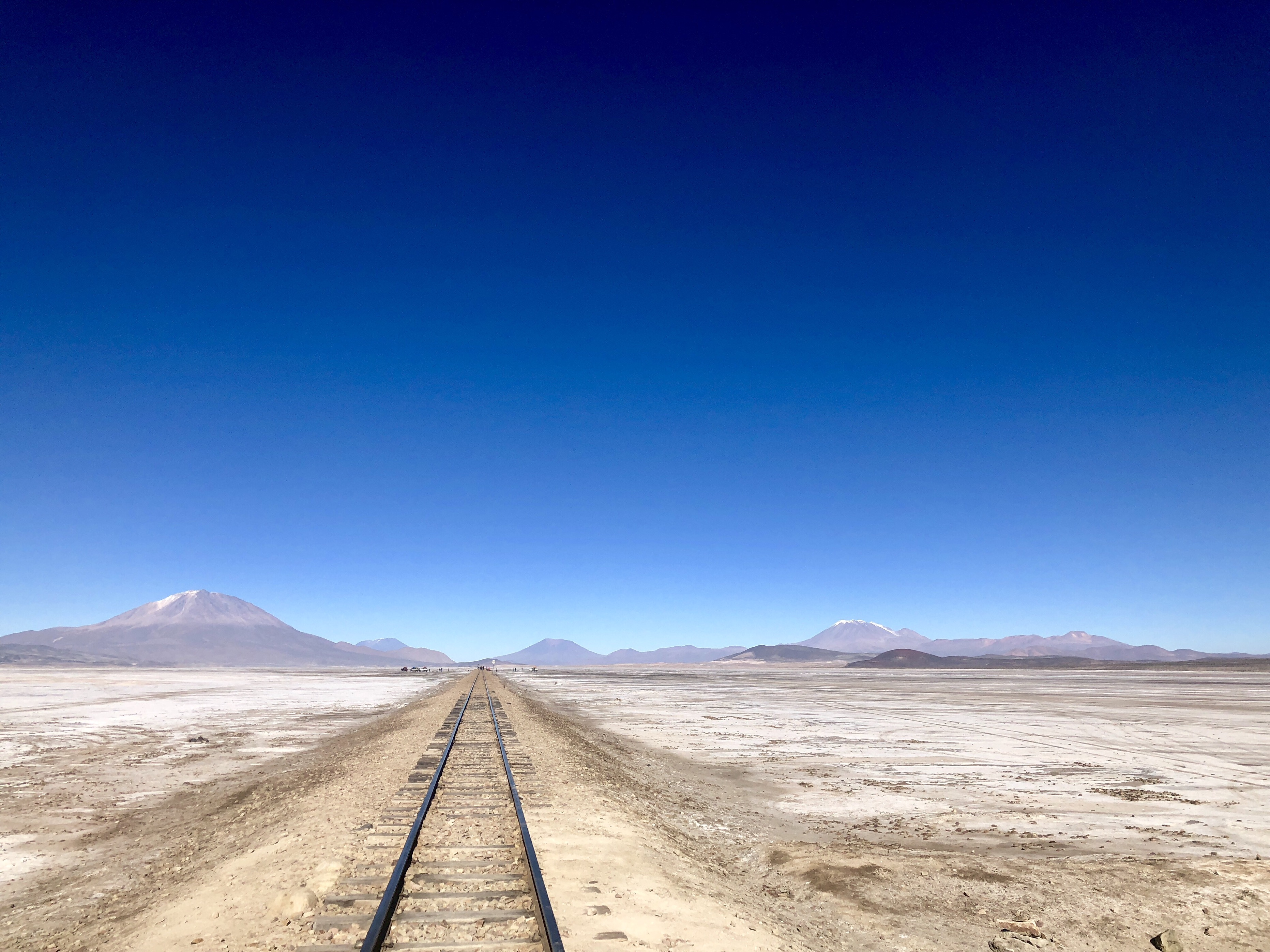 첫 번째 목적지를 향해 가다가, 드넓은 사막 한가운데에 있는 기찻길에서 잠시 멈추었다.