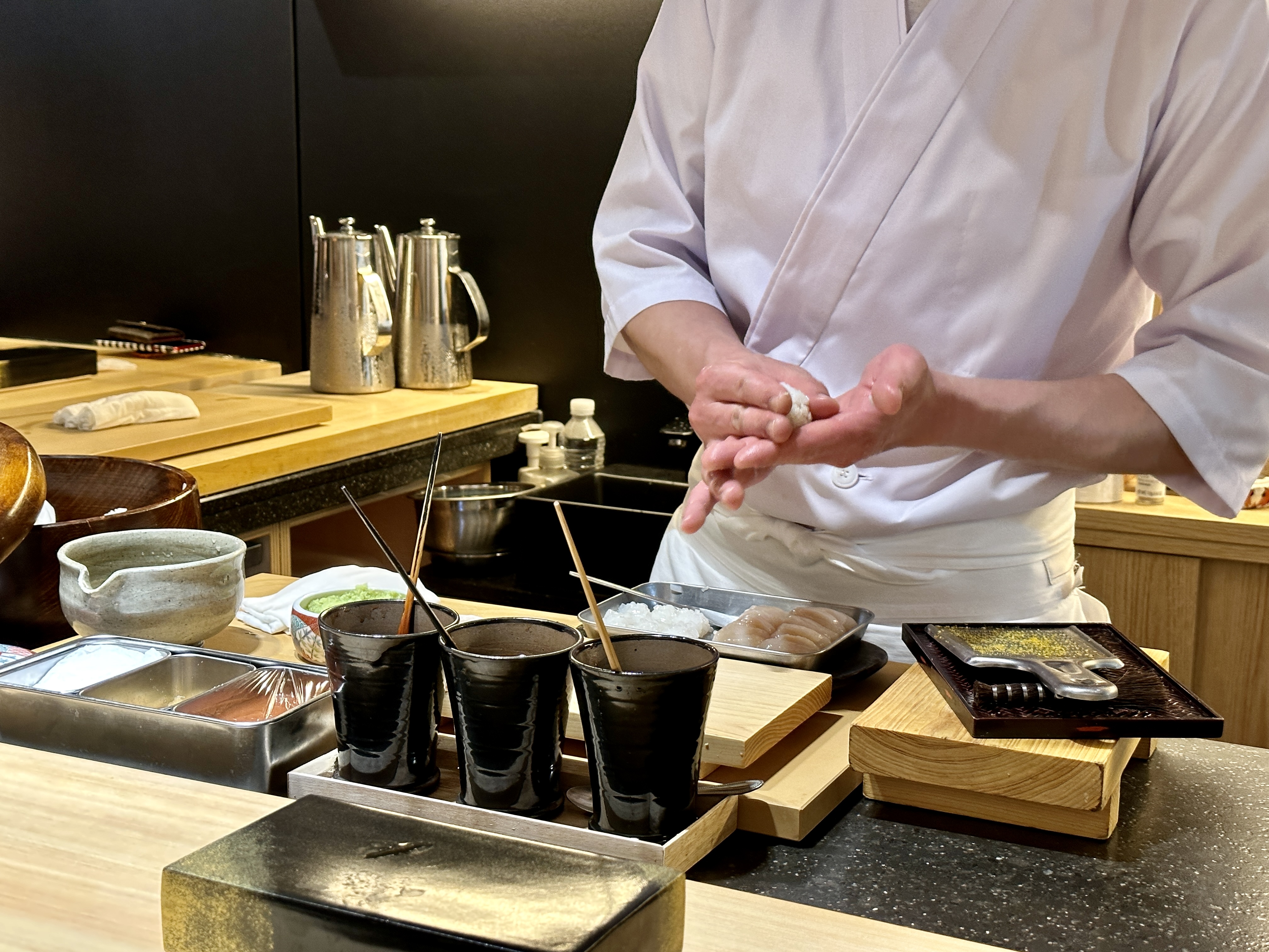 식사는 스타터로 시작해서 초밥도 한점씩 직접 만들어서 주셨는데요!
