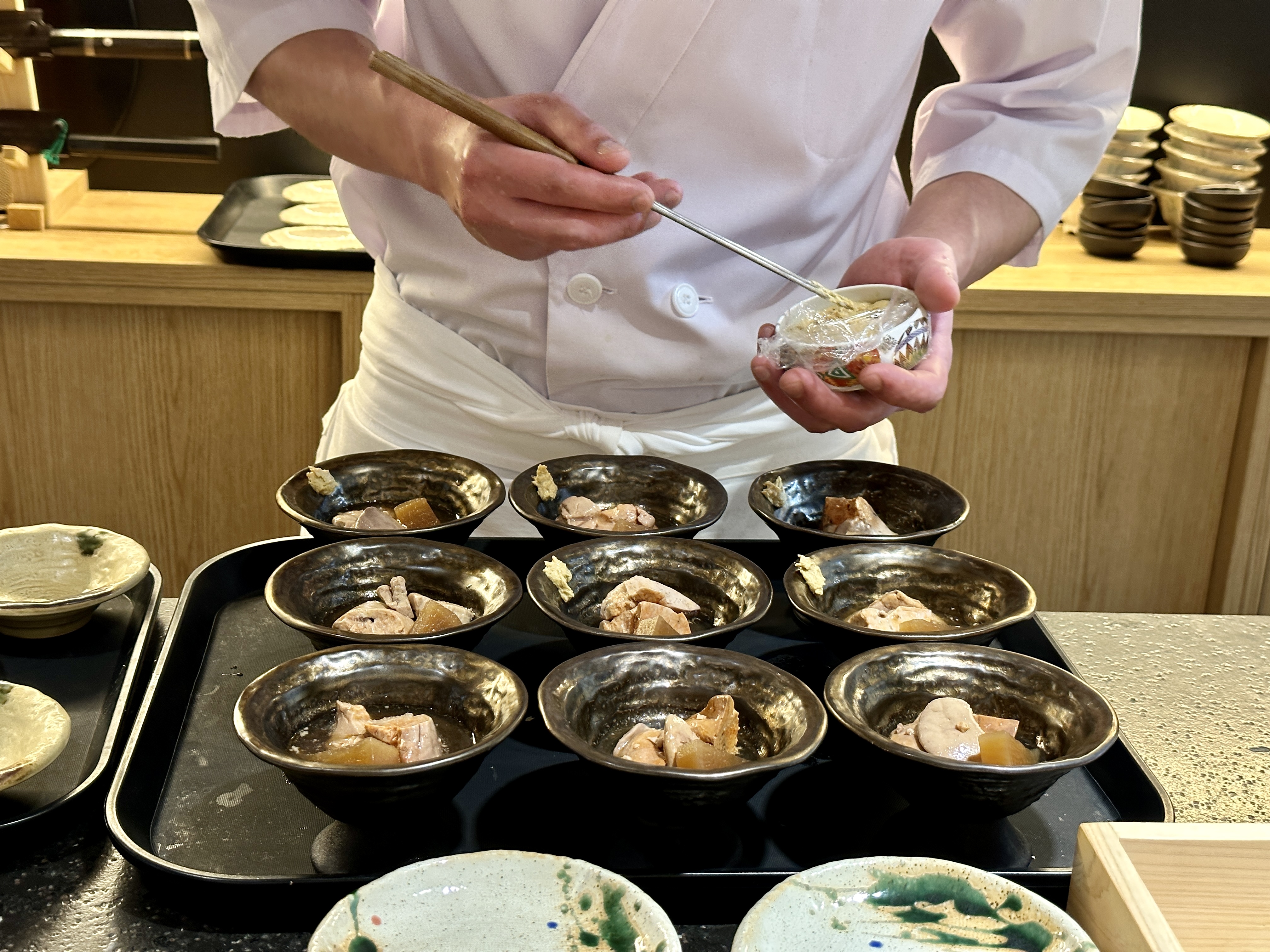 오마카세는 정원 9명 마감으로 18시에 시작해서 약 100분간 코스별로 식사가 진행됩니다.