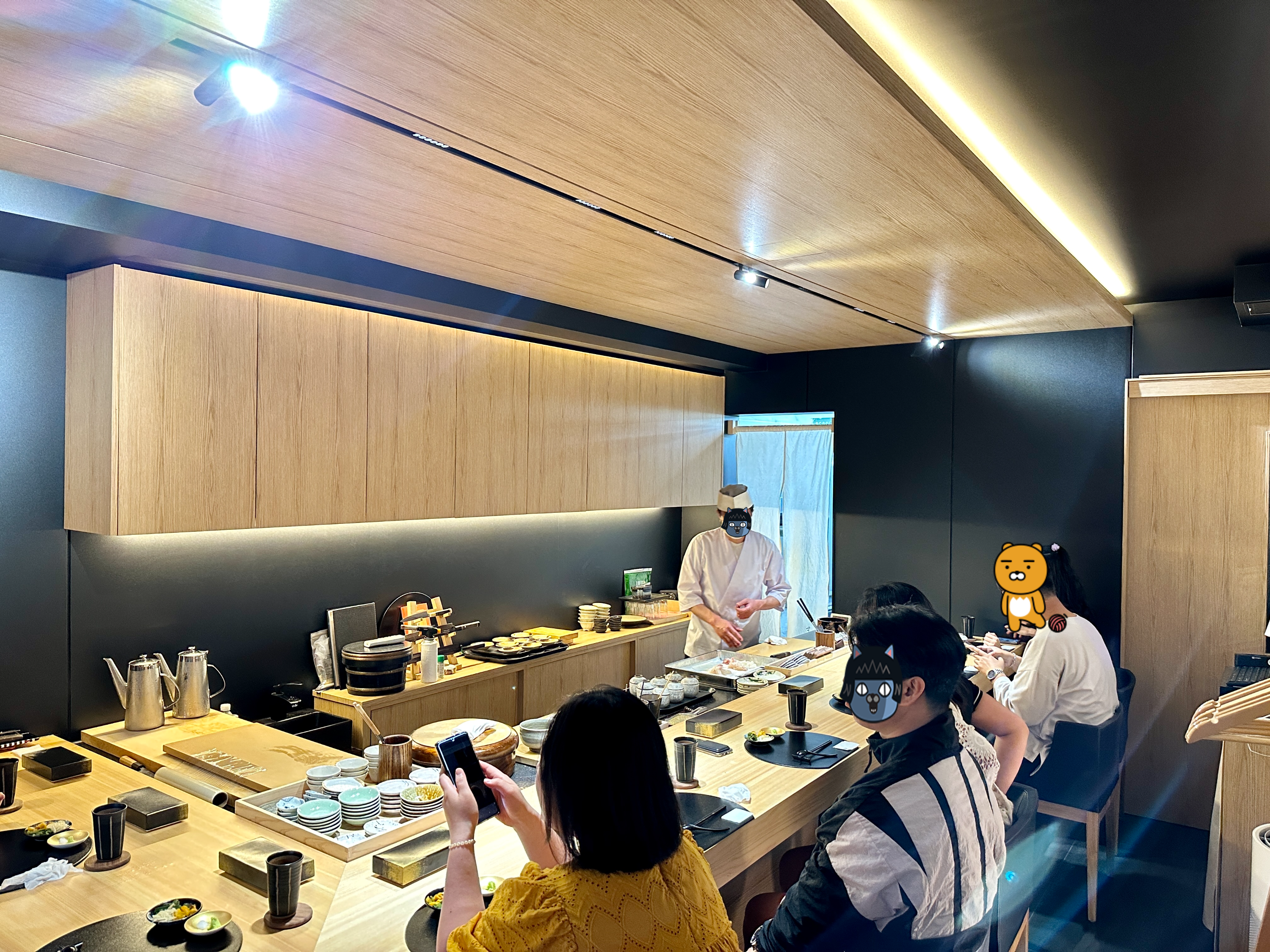 오마카세는 정원 9명 마감으로 18시에 시작해서 약 100분간 코스별로 식사가 진행됩니다.