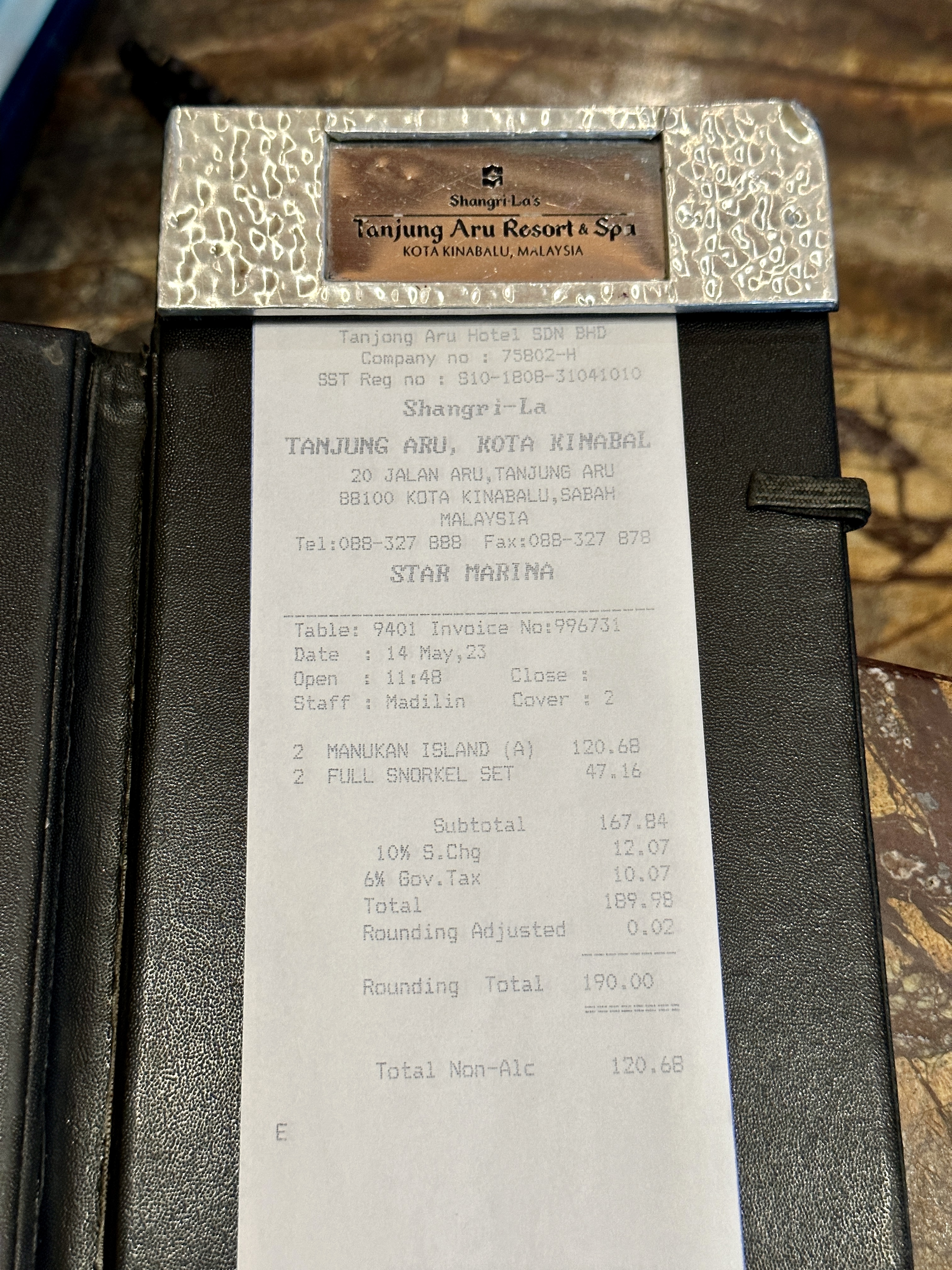 2인 총 합계 120 링깃, 약 36,000원이 들었습니다.