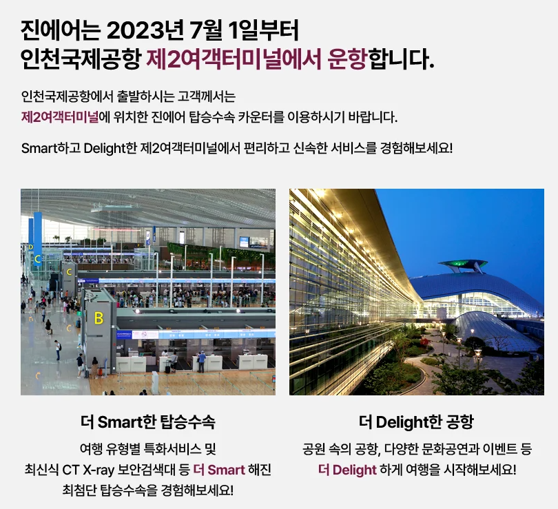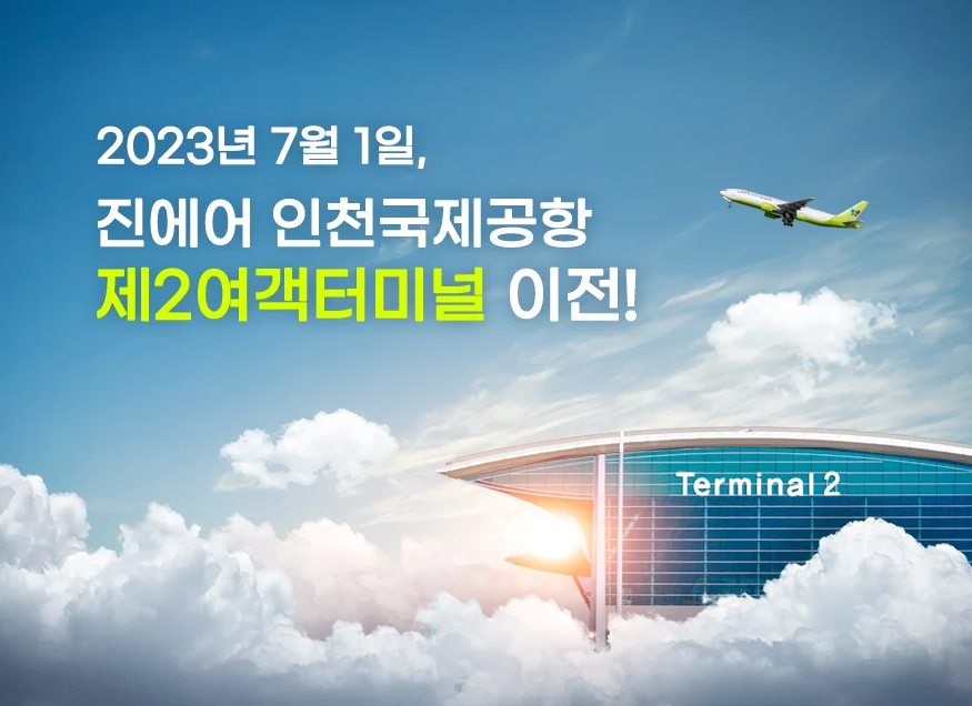진에어는 2023년 7월 1일부터 인천국제공항 제2여객터미널로 이전합니다.