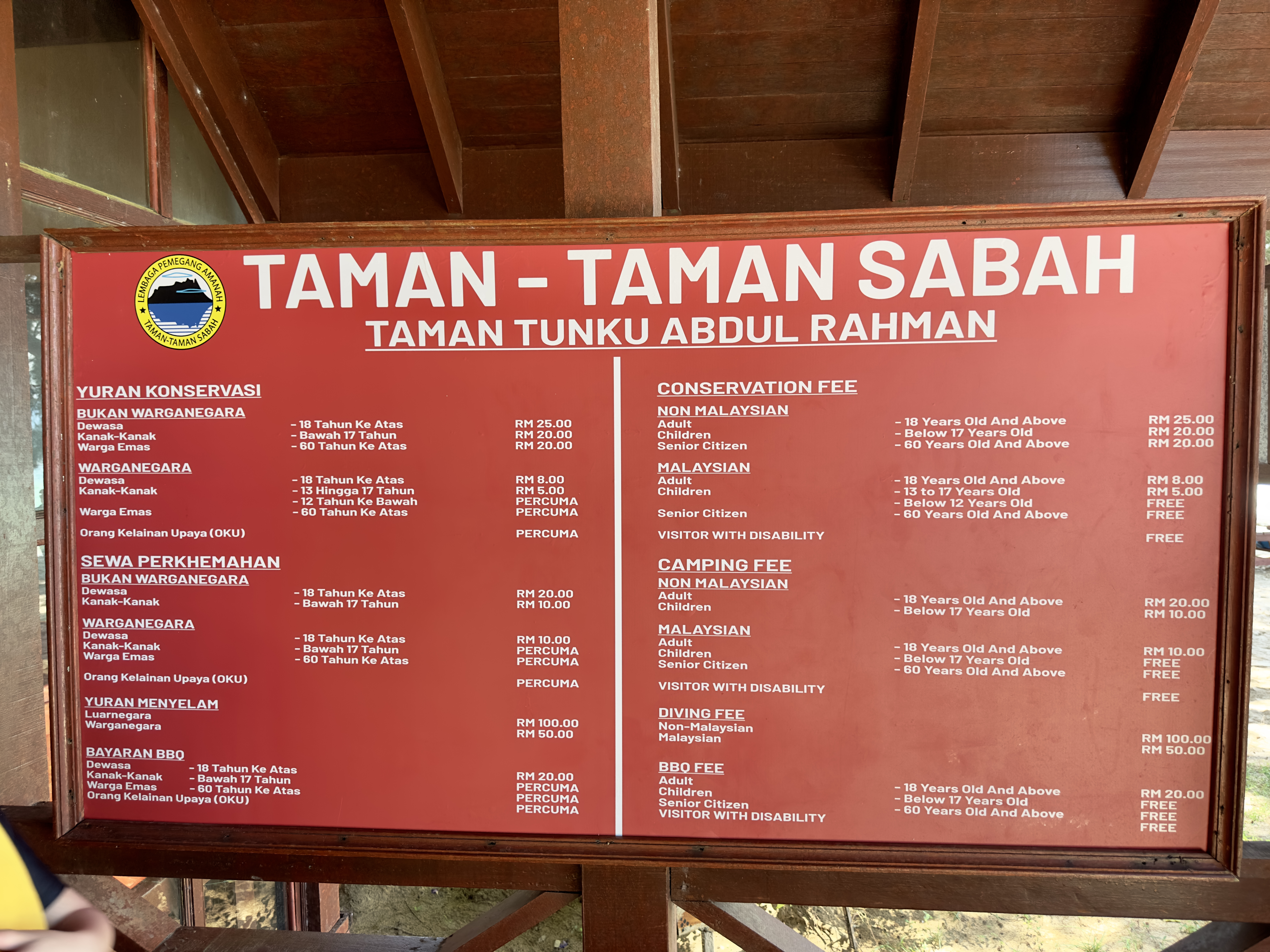 마누칸섬은 입장료로 1인당 25링깃 (약 7,500원)의 비용을 내야 합니다.
