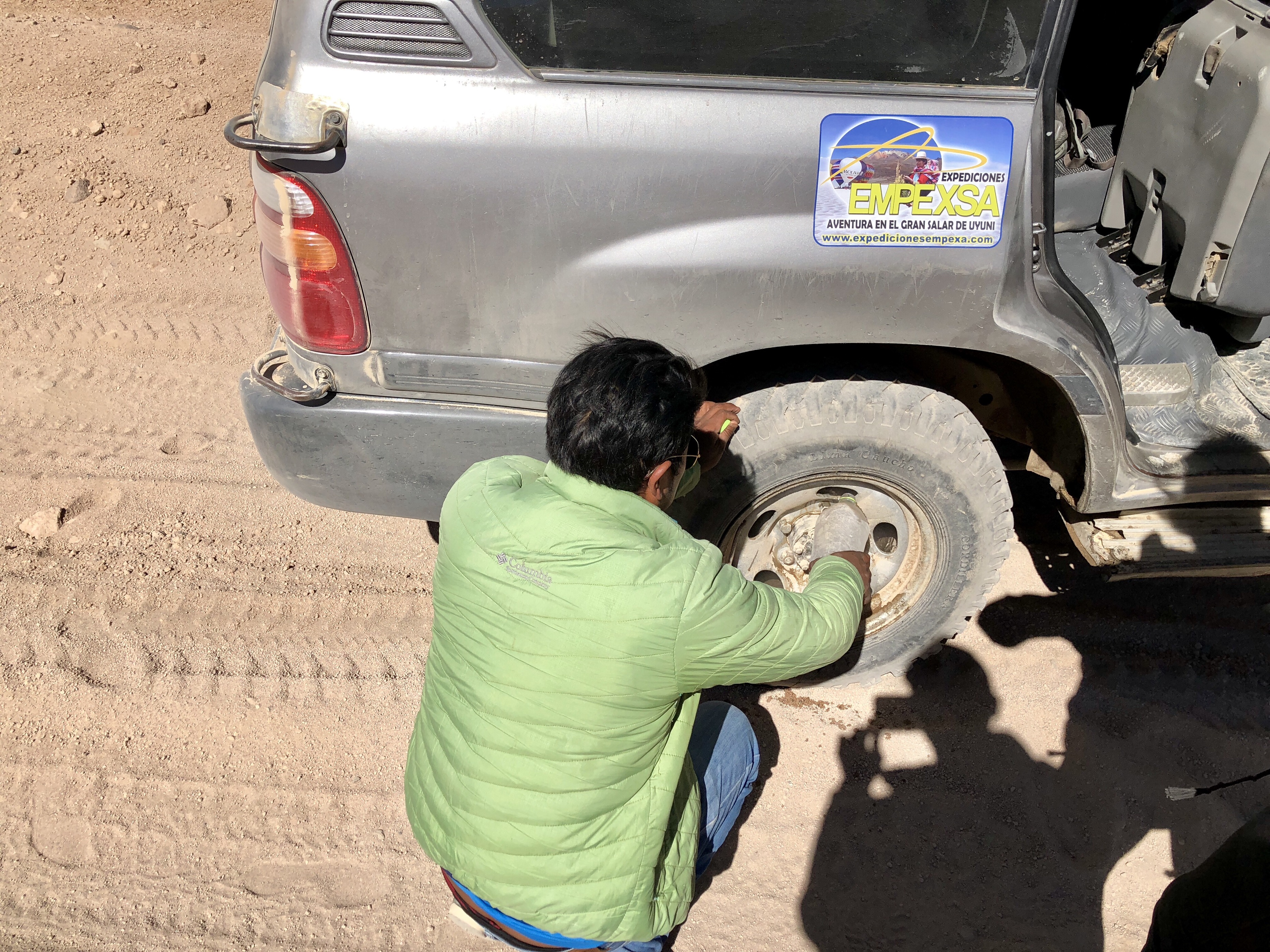 우유니 여행길이 소금기호수와 사막길을 번갈아가며 계속 다니기에 차량관리를 더 꼼꼼히