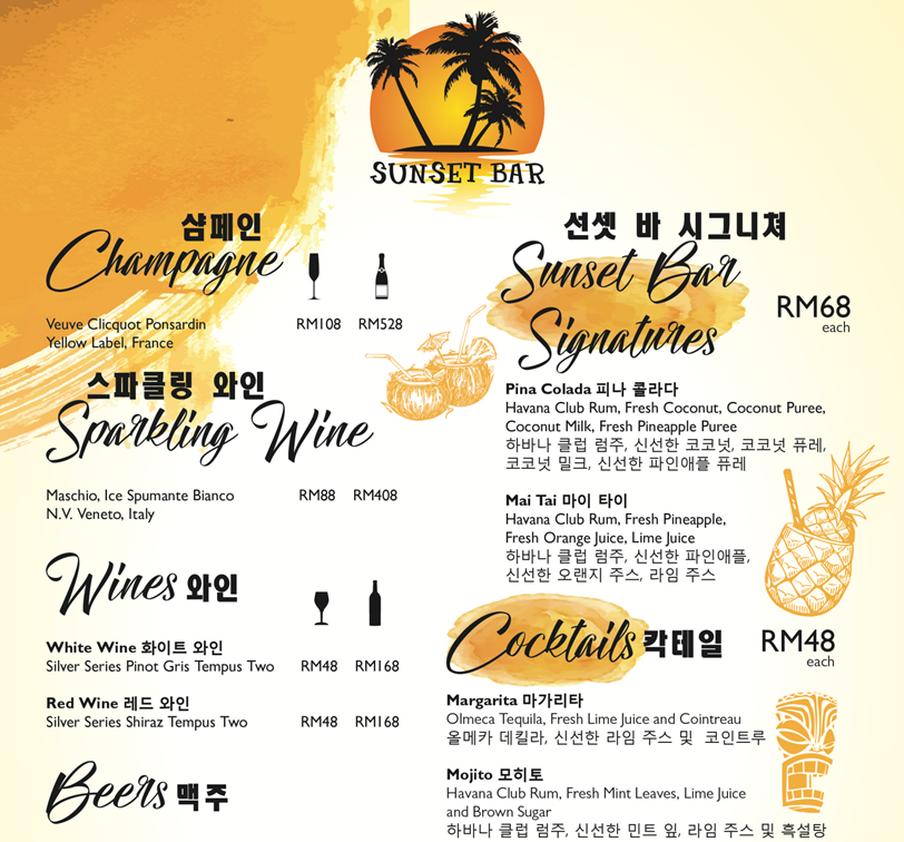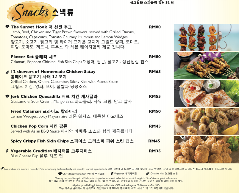 샹그릴라 탄중아루 선셋 바 Sunset TAH Menu