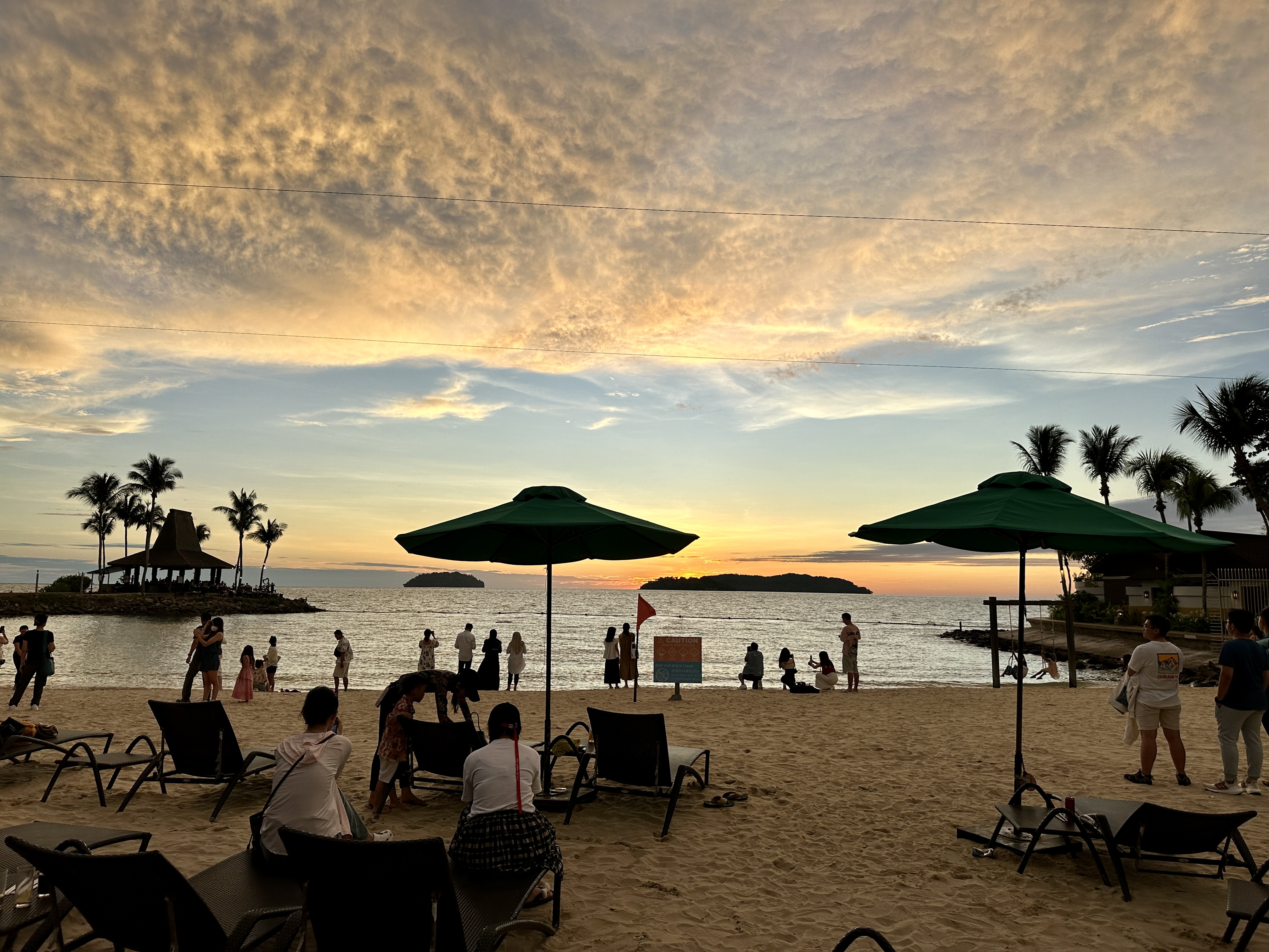 샹그릴라 탄중아루 리조트 해변에서 보는 일몰도 정말 아름다웠고