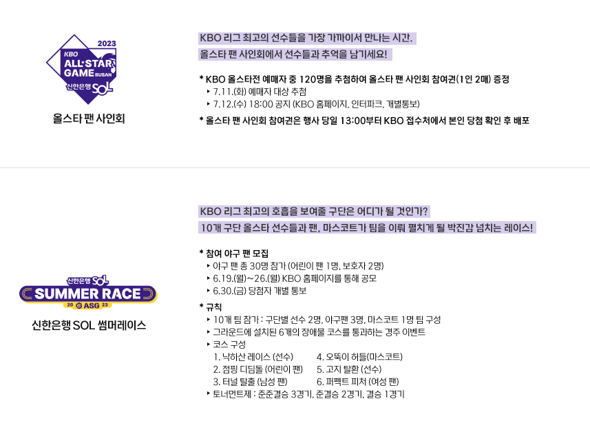2023 프로야구 올스타전 프로그램 - 올스타 팬 사인회 | 신한은행 SOL 썸머레이스