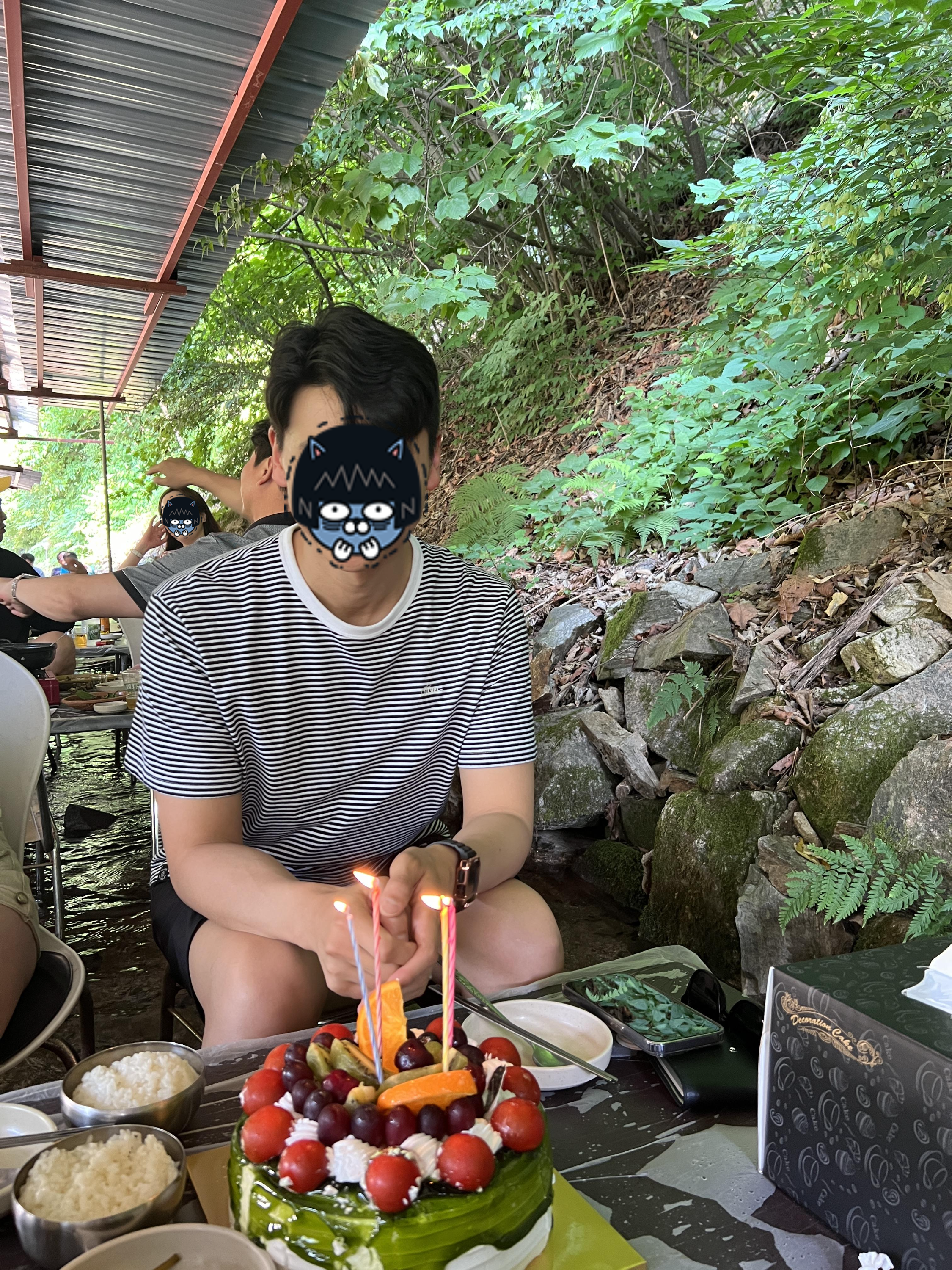 또 이날 마침 제 생일이어서 난생처음 계곡에 발 담그고 생일케이크에 축하를 받으니