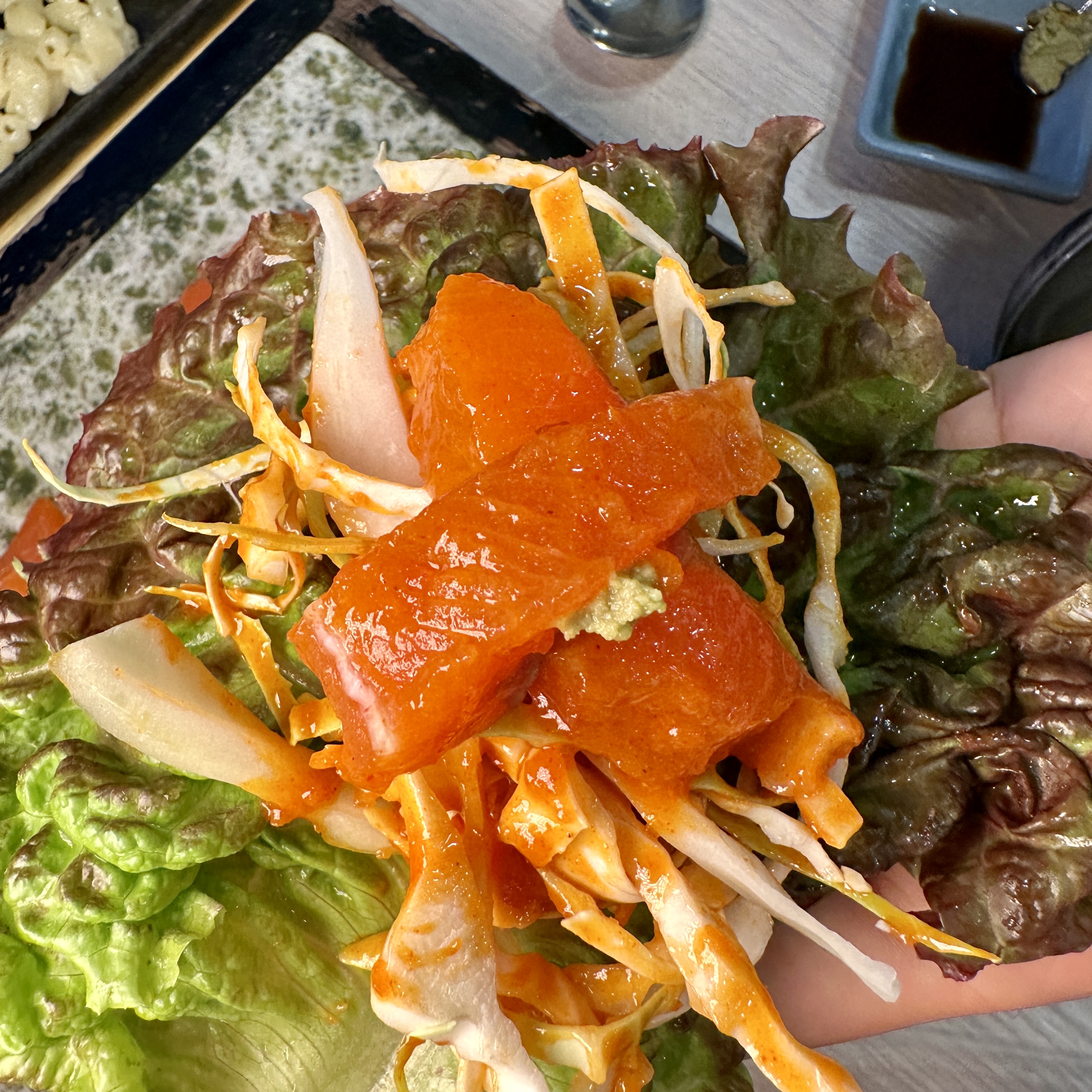 저는 육류도 그렇고 어류도 채소와 같이 쌈에 싸먹어야 더 맛있더라구요!